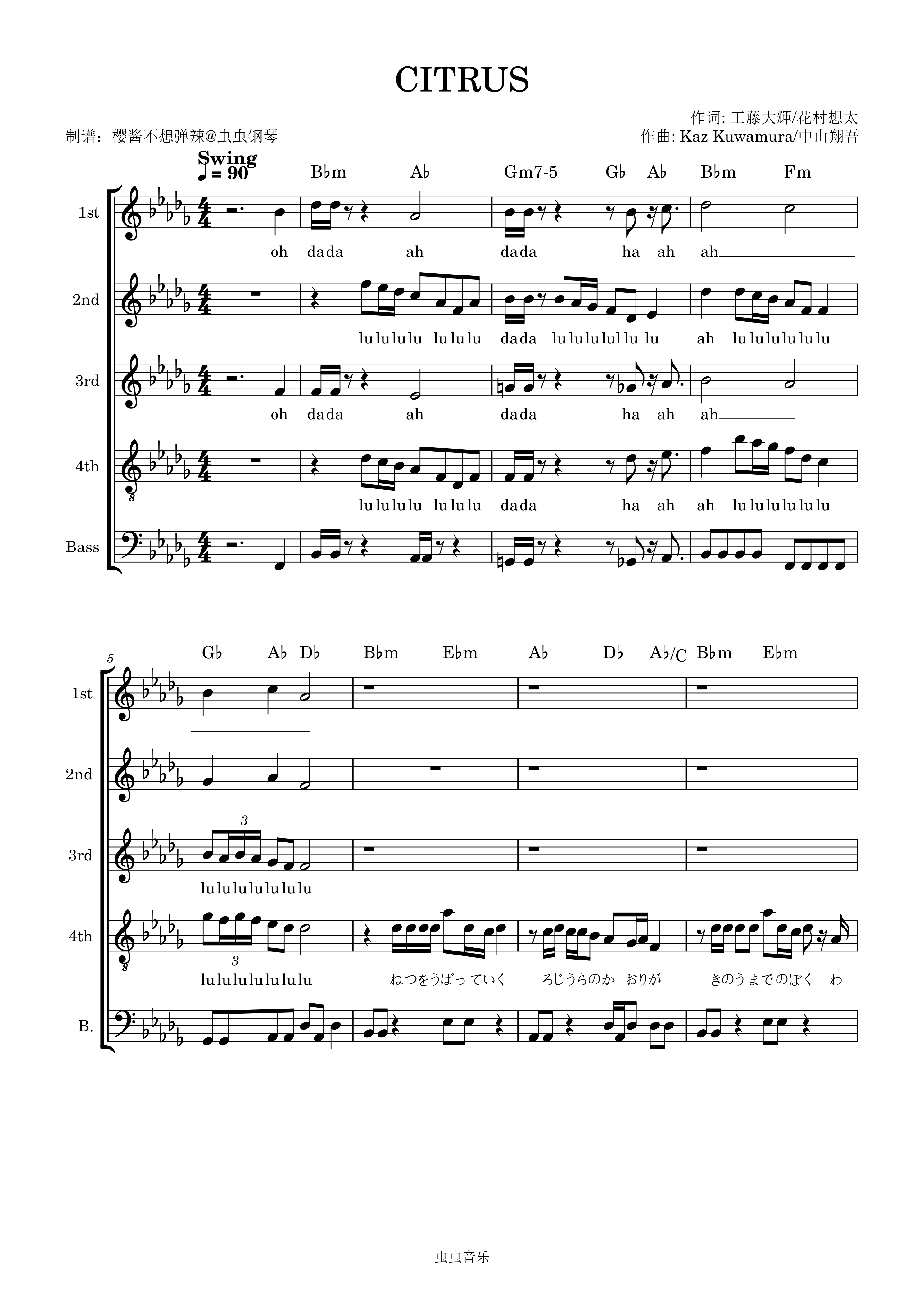 钢琴谱:CITRUS (日剧《极主夫道》主题曲)Da-iCE
