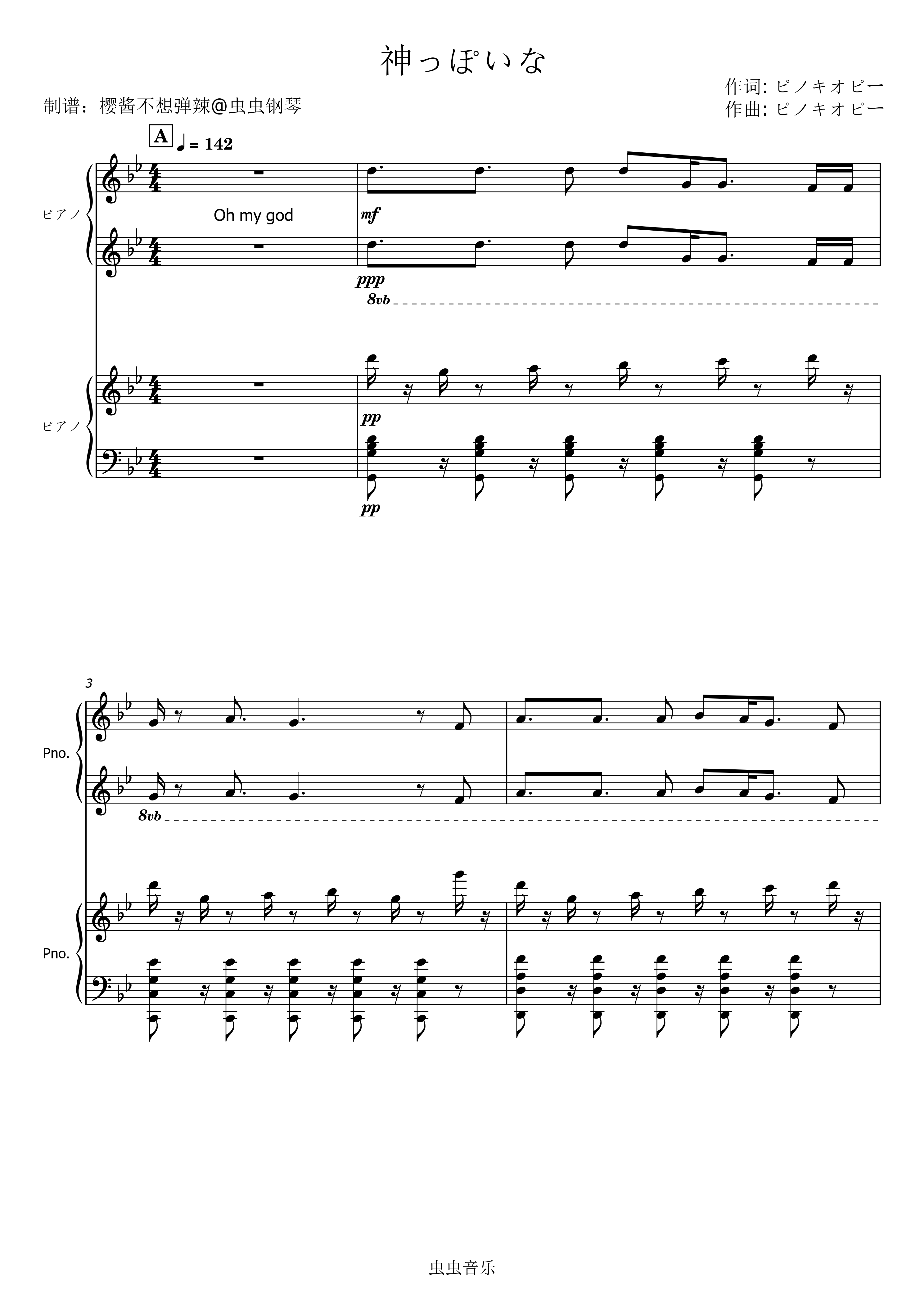 钢琴谱:神っぽいな (DECO*27's Miku Ver.) (像神一样呐) DECO*27/ピノキオピー/初音ミク