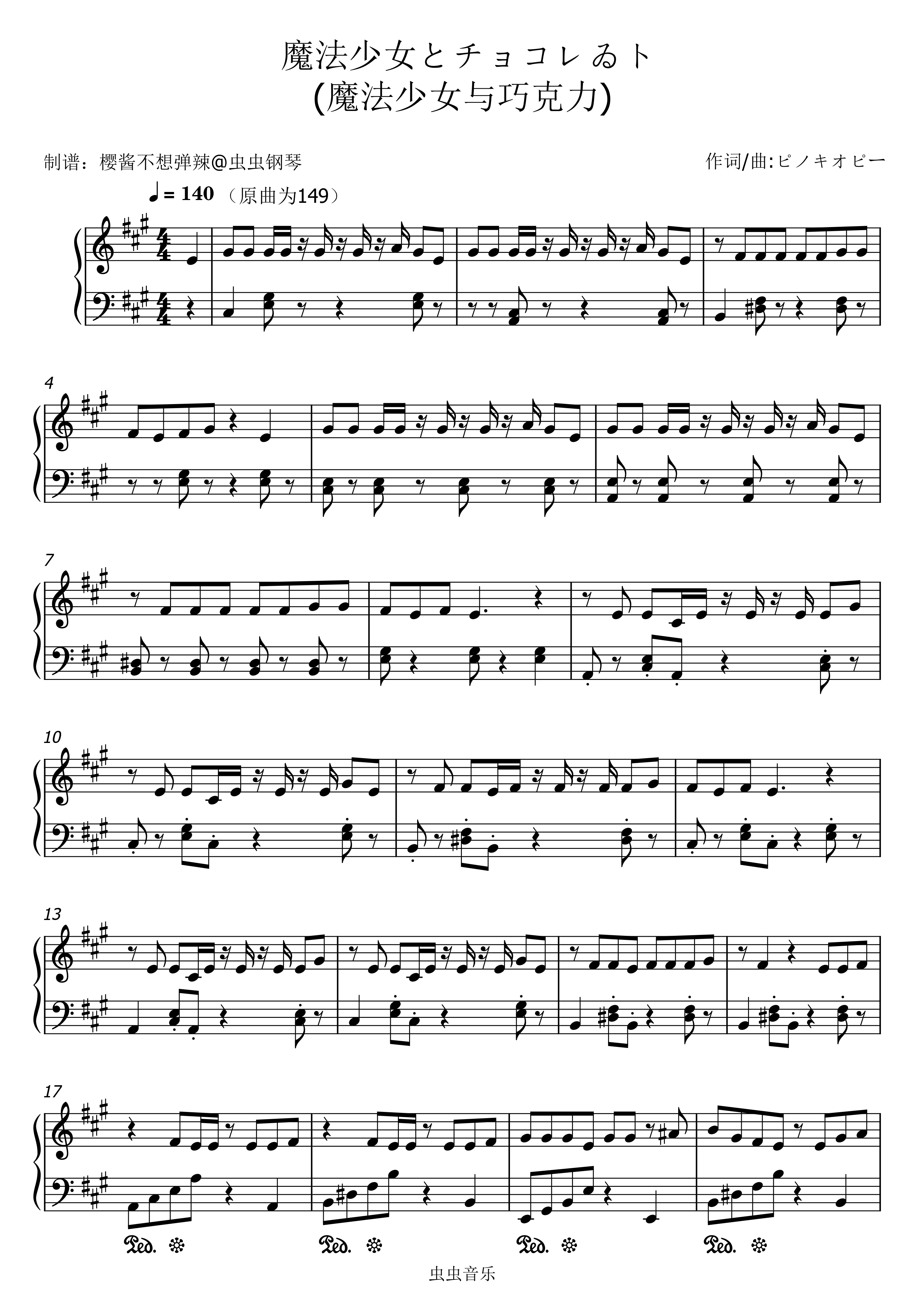 钢琴谱:魔法少女とチョコレゐト (魔法少女与巧克力)  ピノキオピー/初音ミク