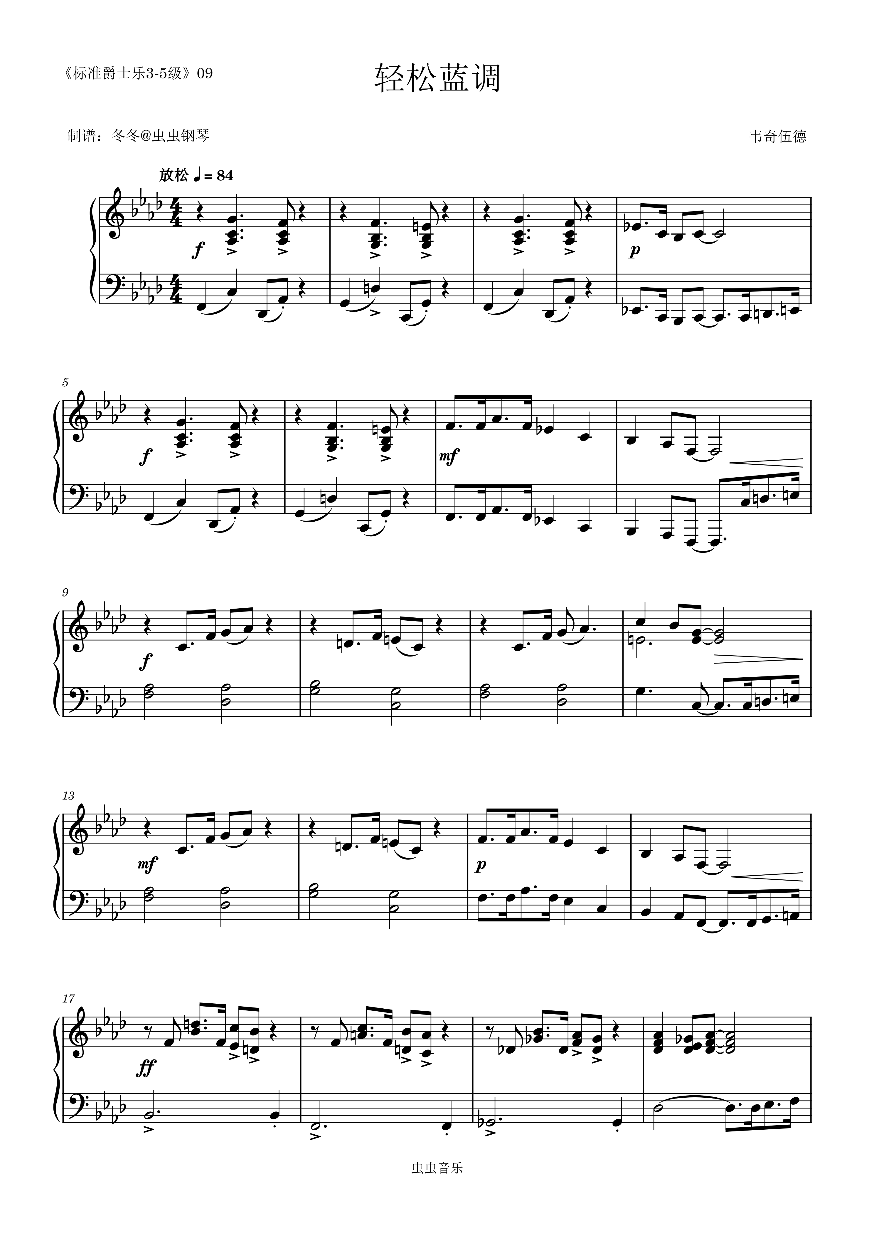 • 39.冒牌虾蓝调(1)钢琴简谱 c调 数字双手