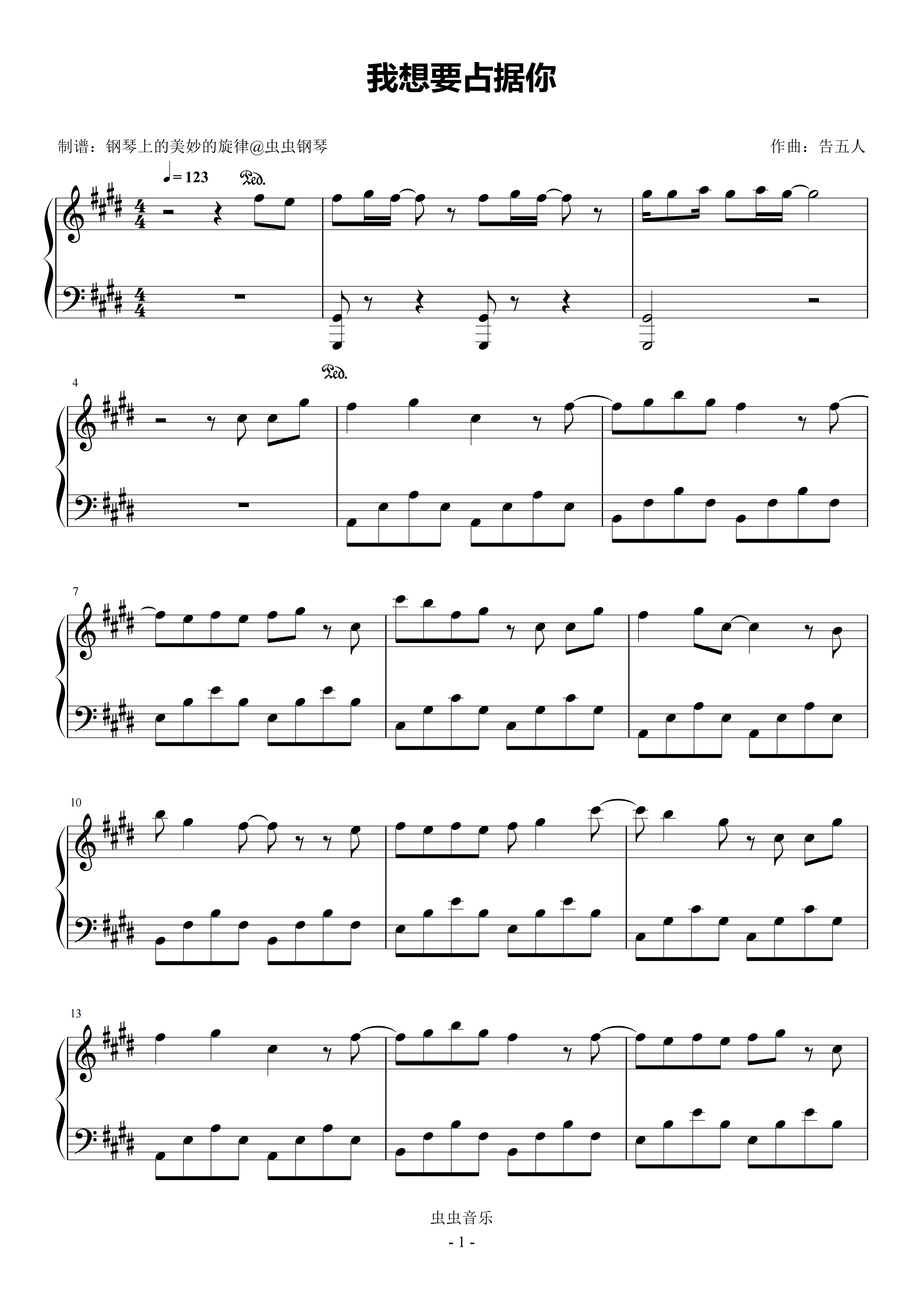 • 我想要钢琴简谱 C调 数字双手 小青争