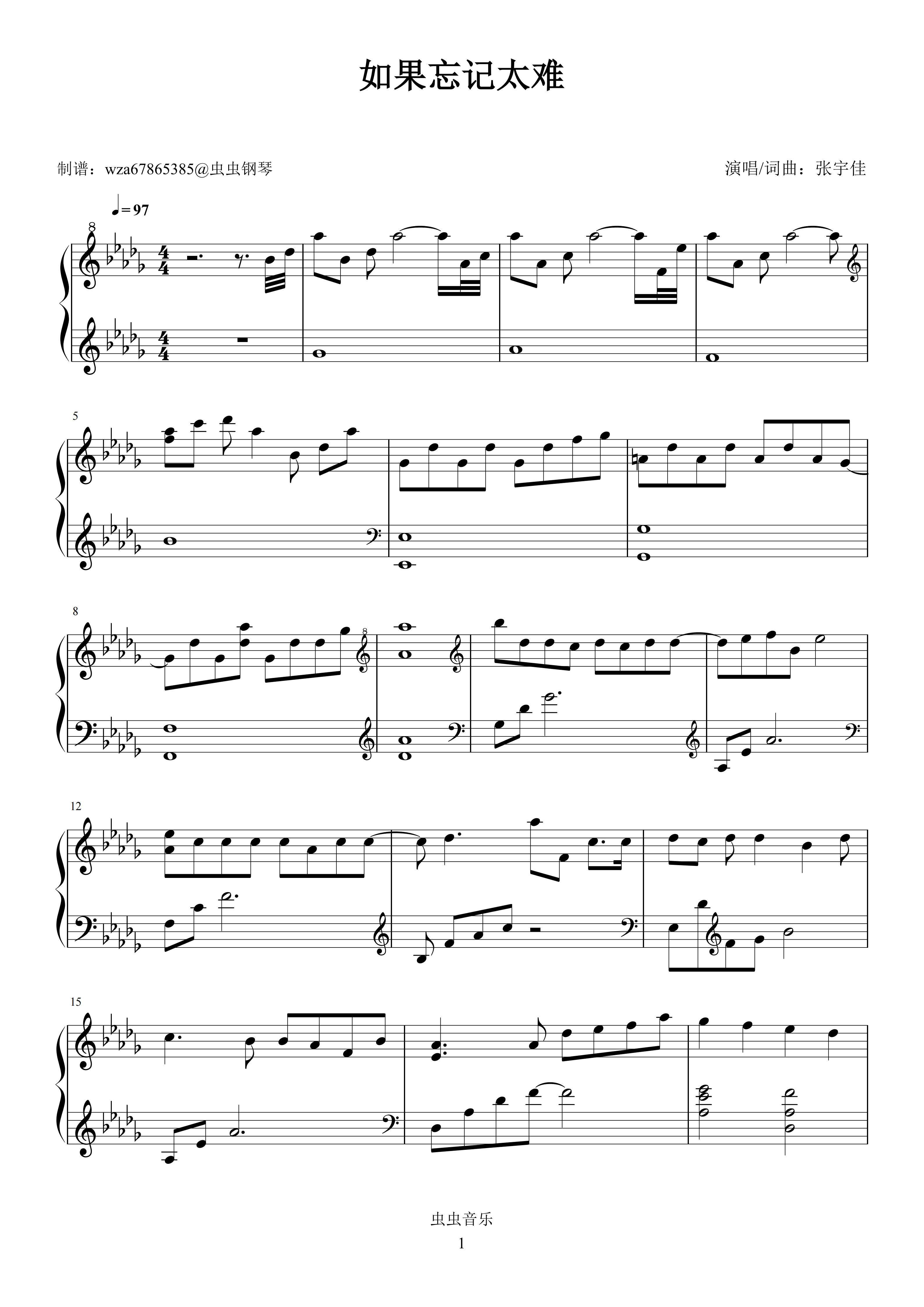 • 就忘了吧钢琴简谱 Bb调 数字双手 1K