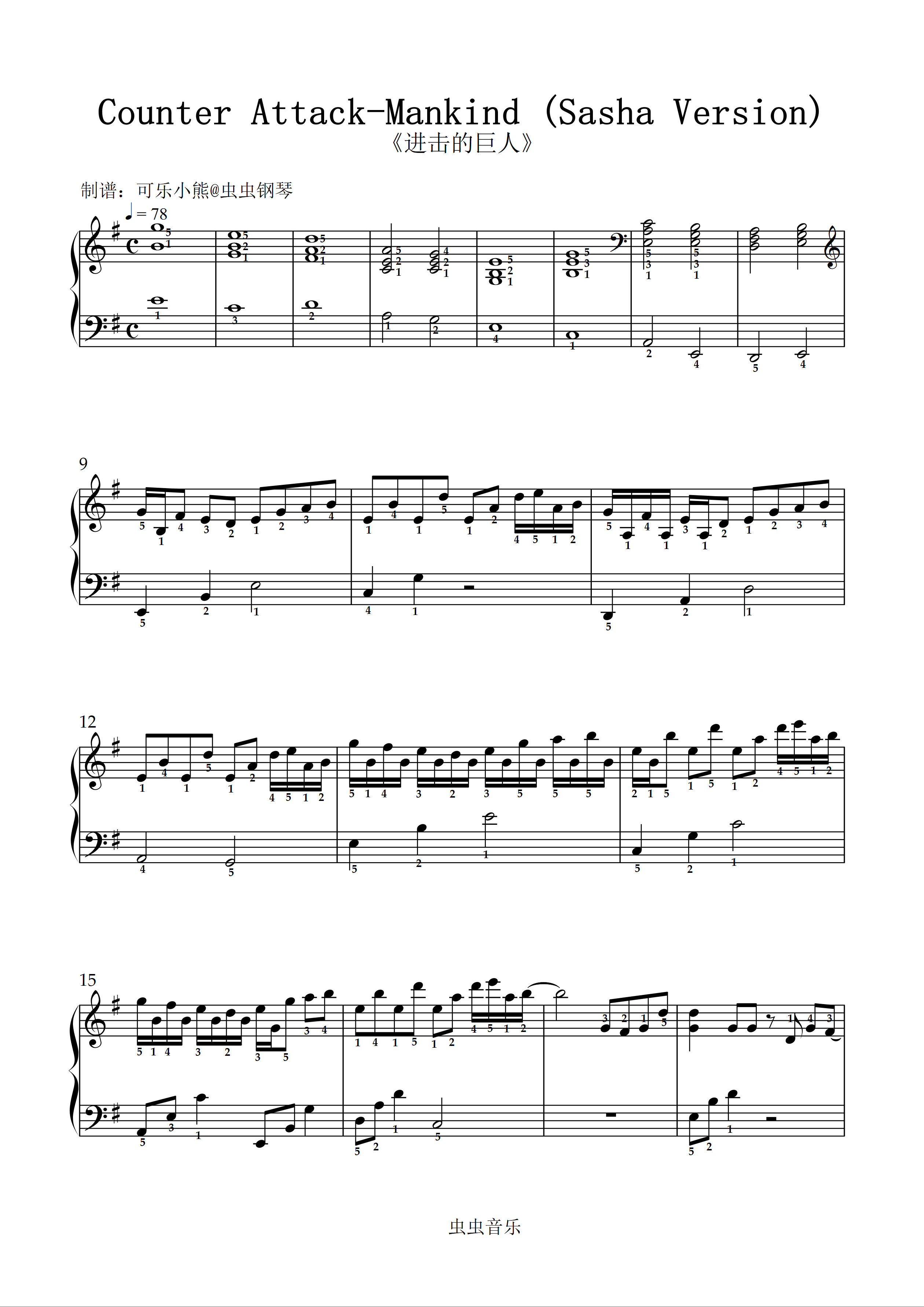 钢琴谱:进击的巨人 | Counter Attack-Mankind(原调+指法)