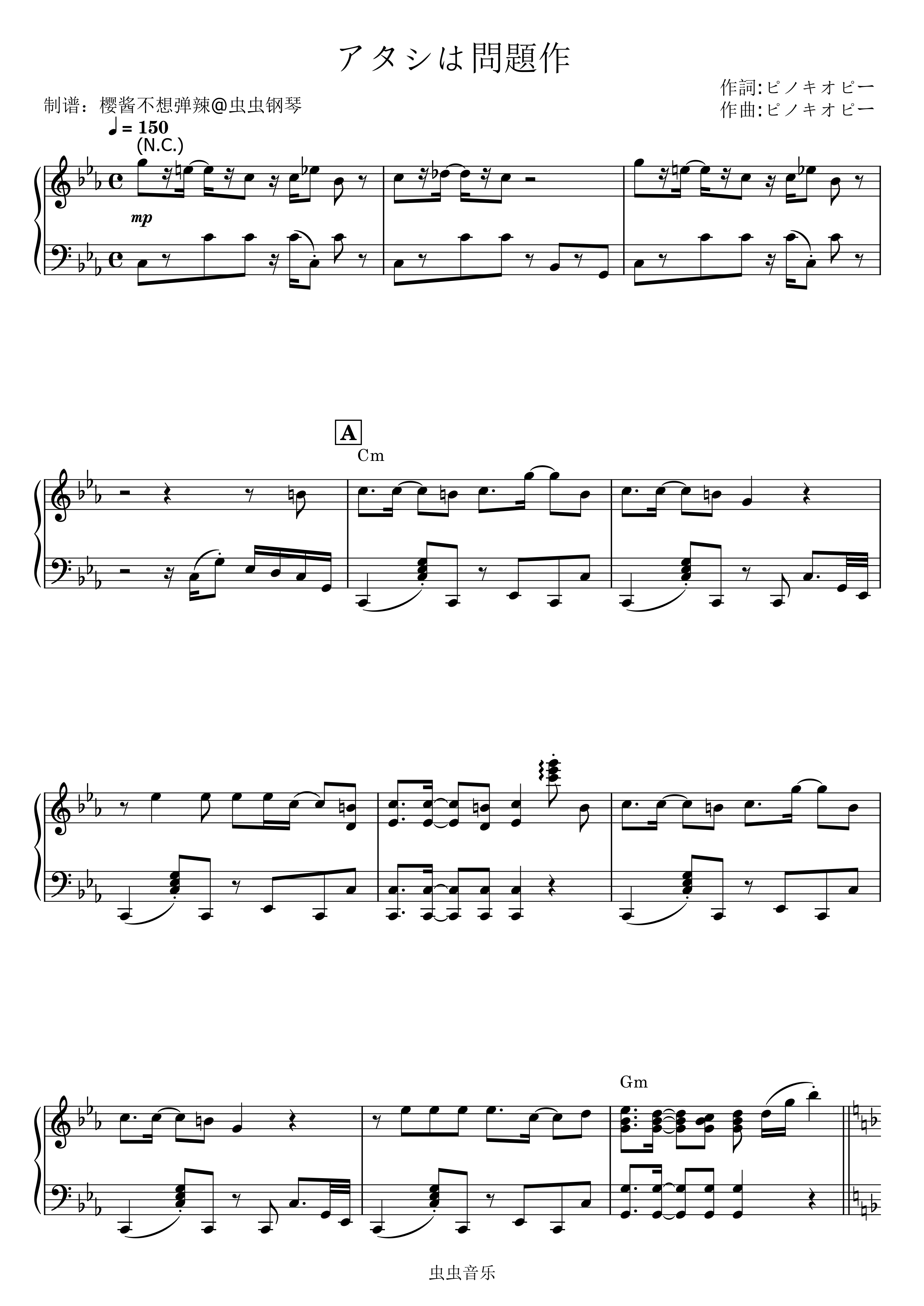 钢琴谱:アタシは問題作 (我是问题作) Ado
