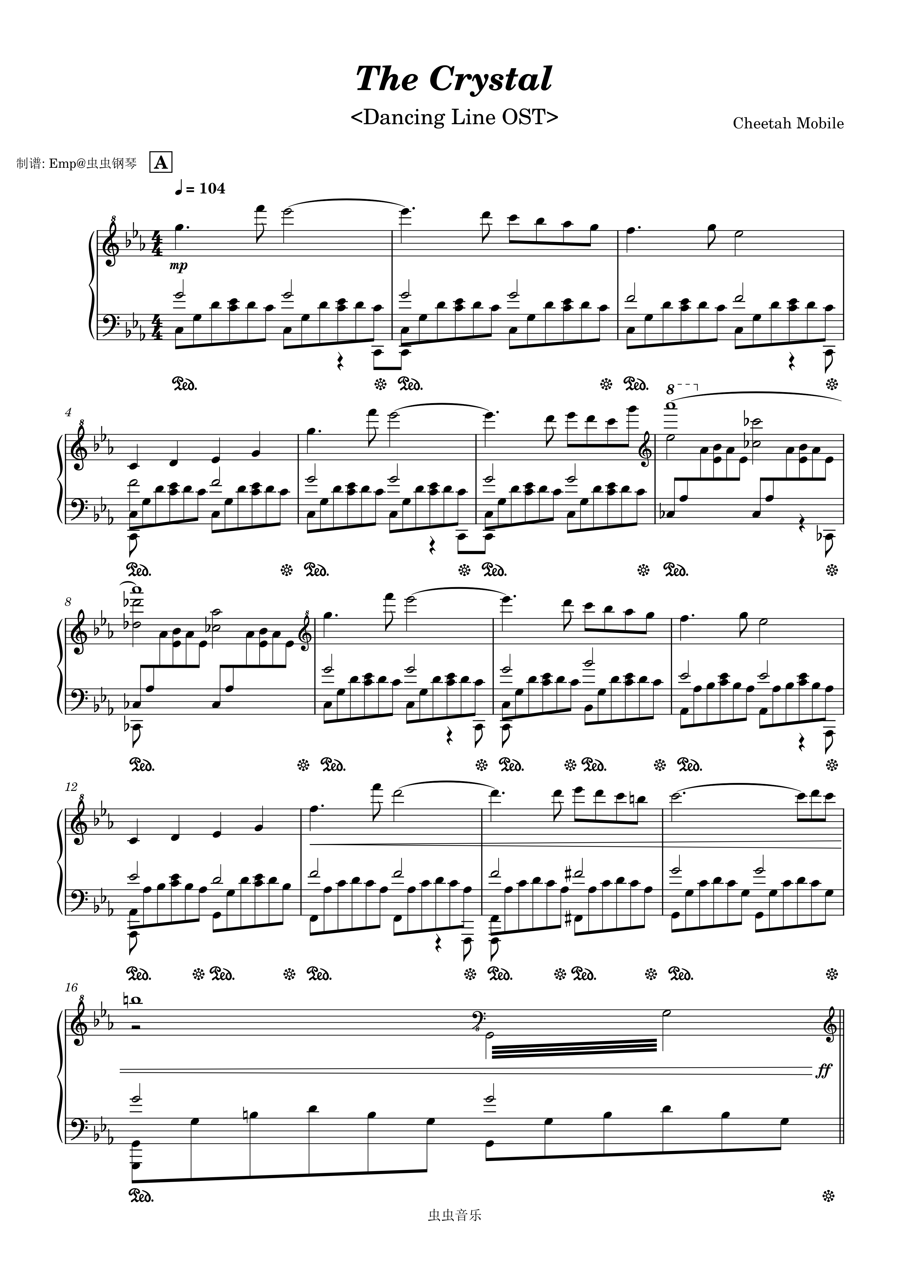 钢琴谱:The Crystal(水晶) — Dancing Line OST 钢琴扒谱(四手)