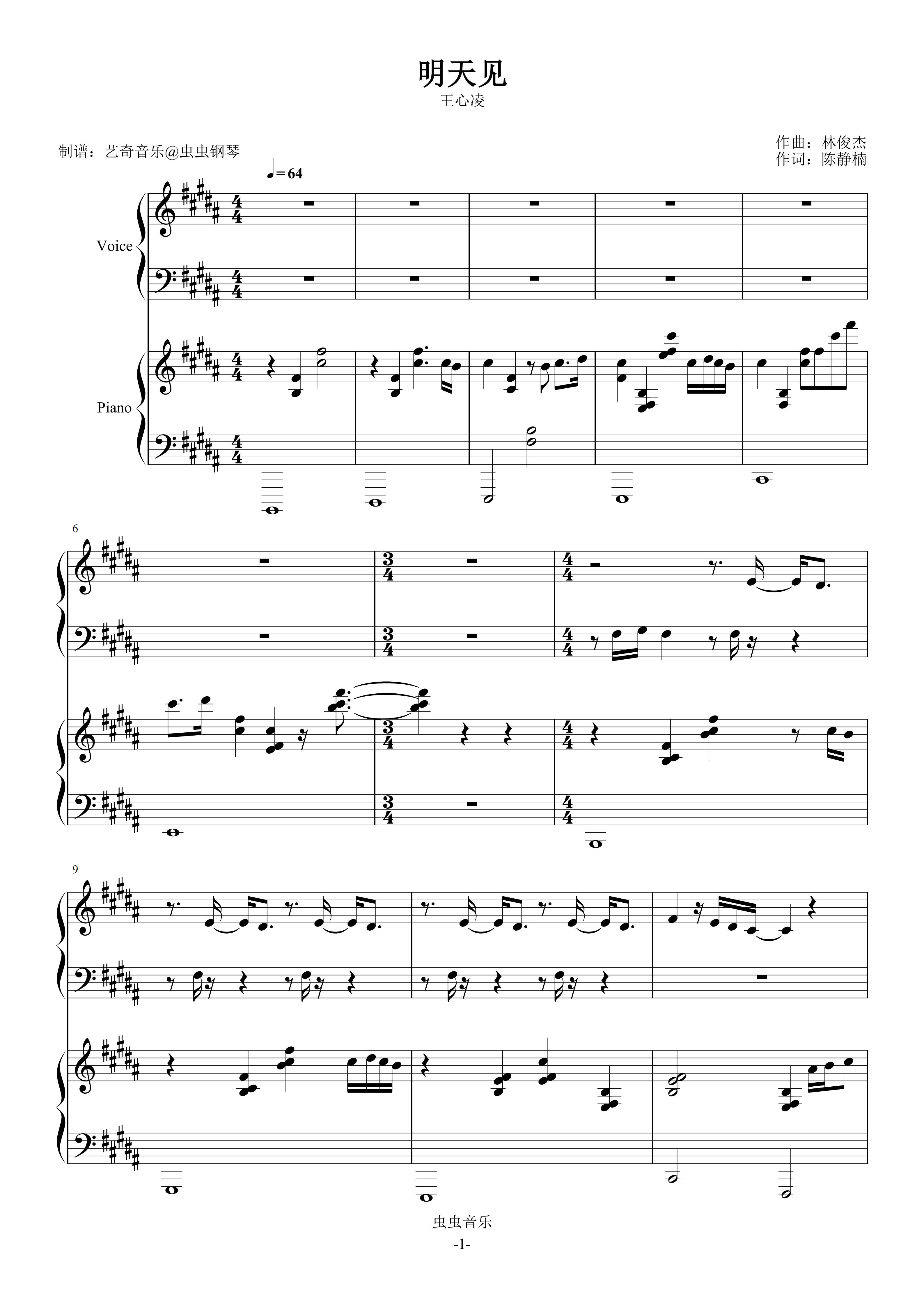 • 明天的世界更美好钢琴简谱 Bb调 数字双手 王平久