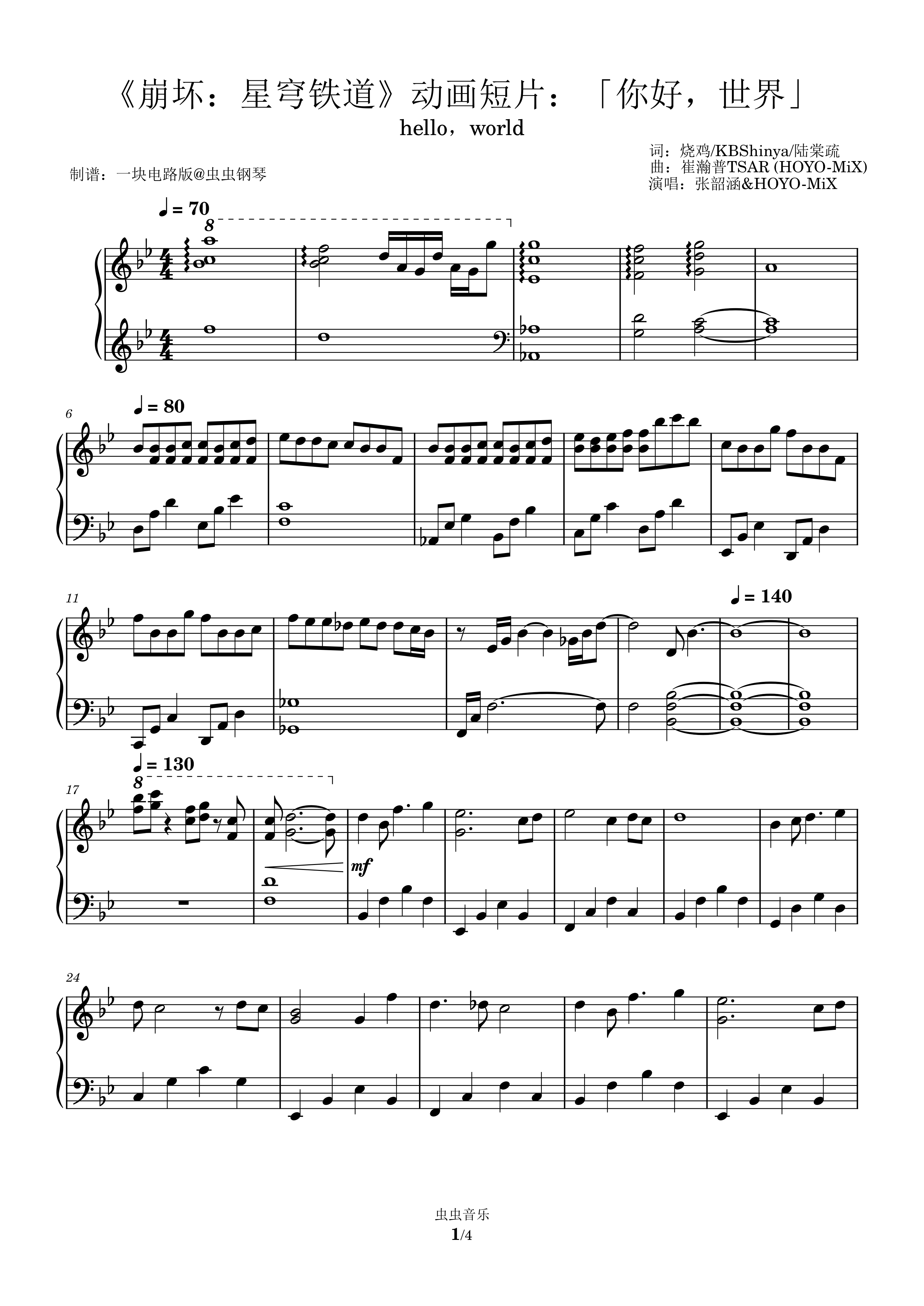 钢琴谱:《崩坏:星穹铁道》动画短片:「你好,世界」BGM(原调)