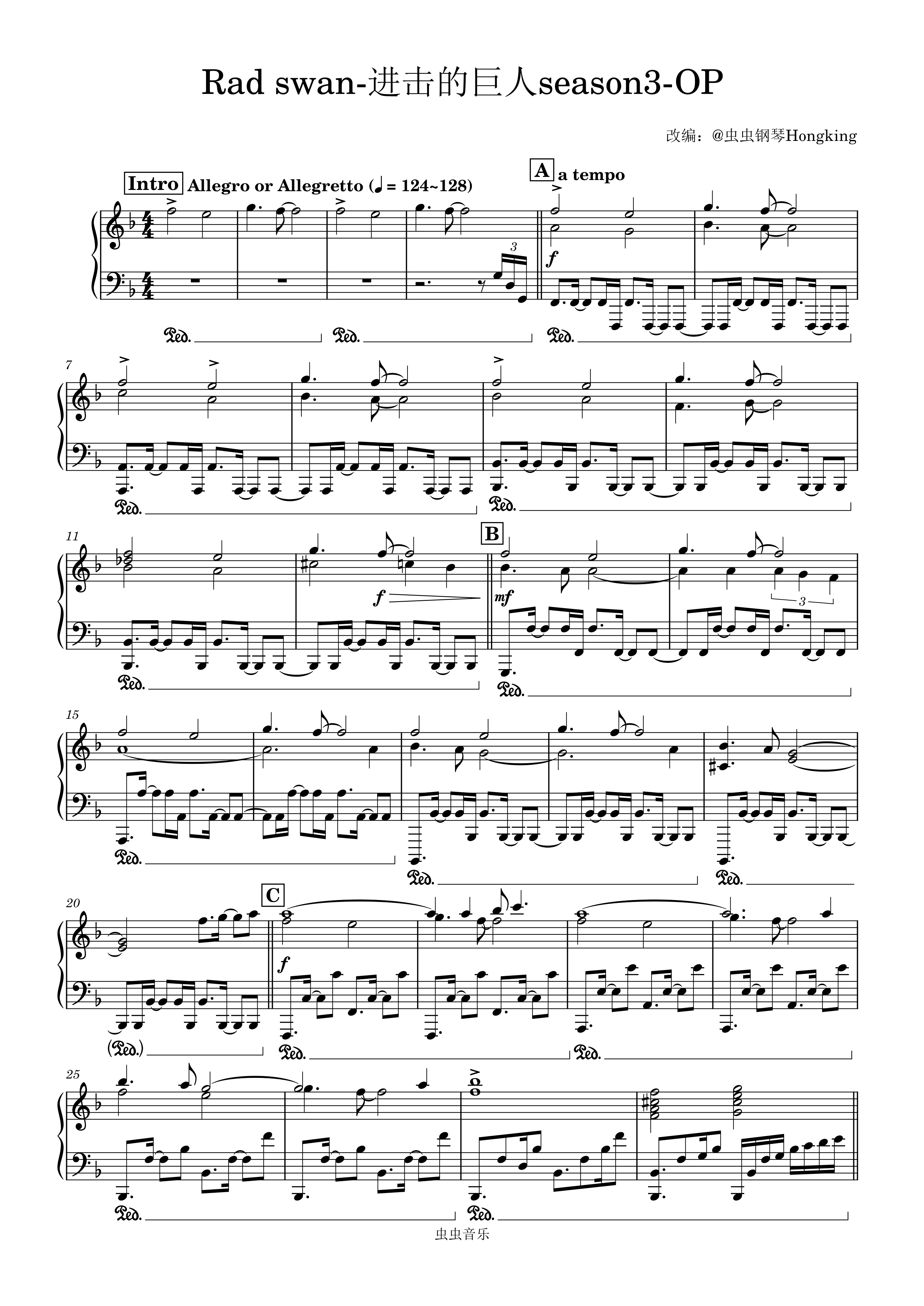 钢琴谱:Rad swan-进击的巨人season3-OP1