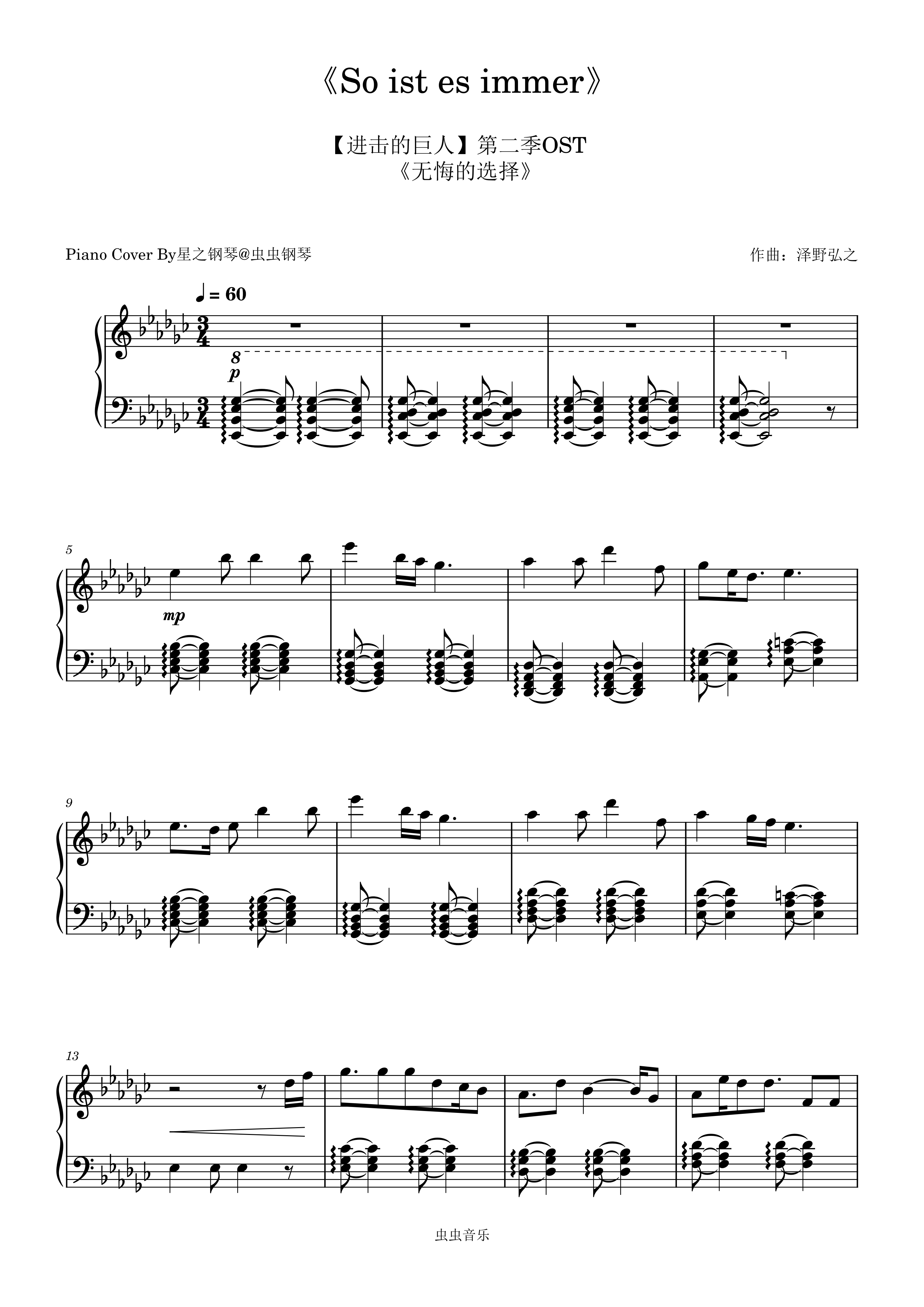 钢琴谱:【进击的巨人】泽野弘之《So Ist Es Immer》钢琴还原独奏版~星之钢琴~