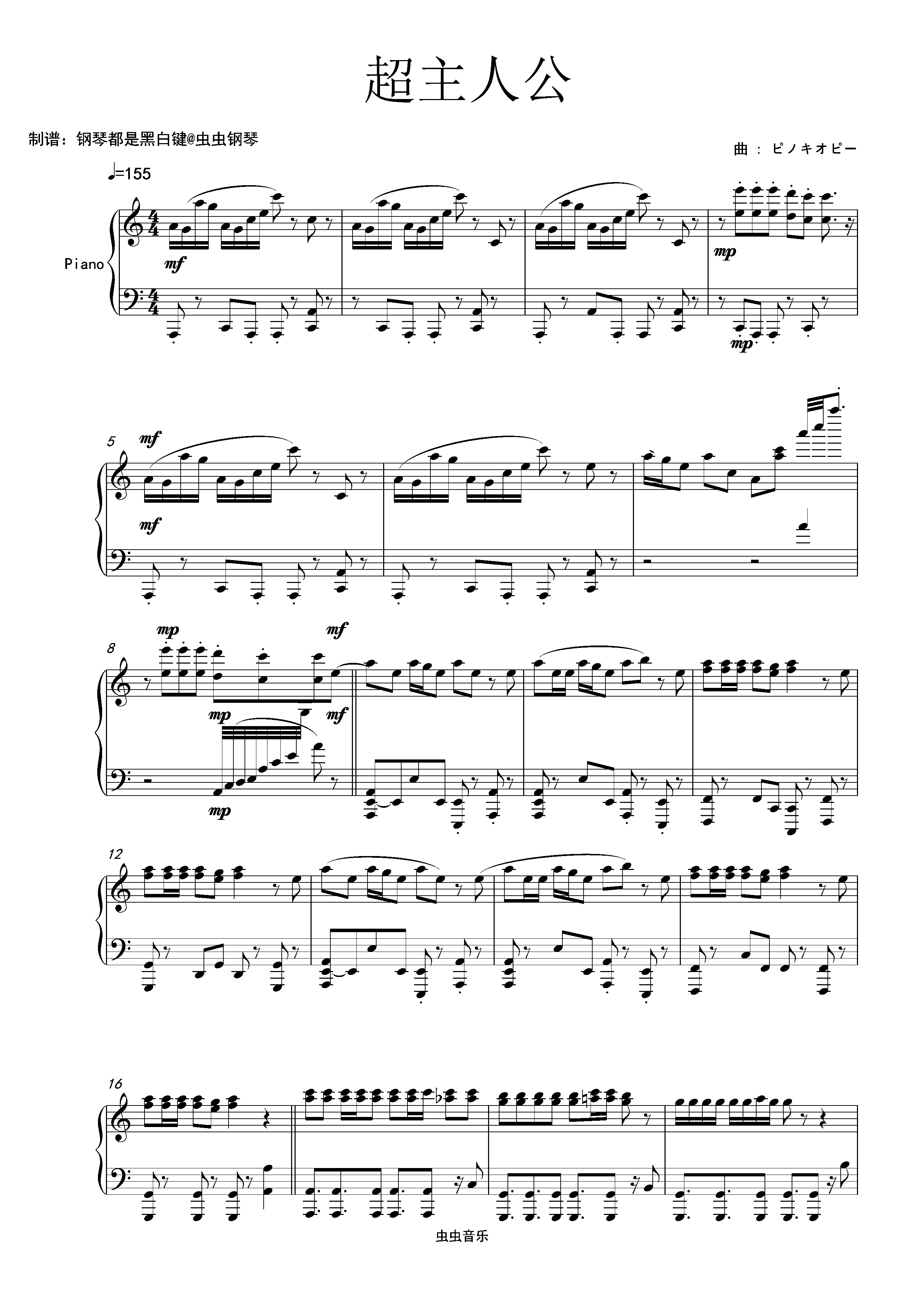 钢琴谱:【初音ミク】超主人公/ピノキオピー