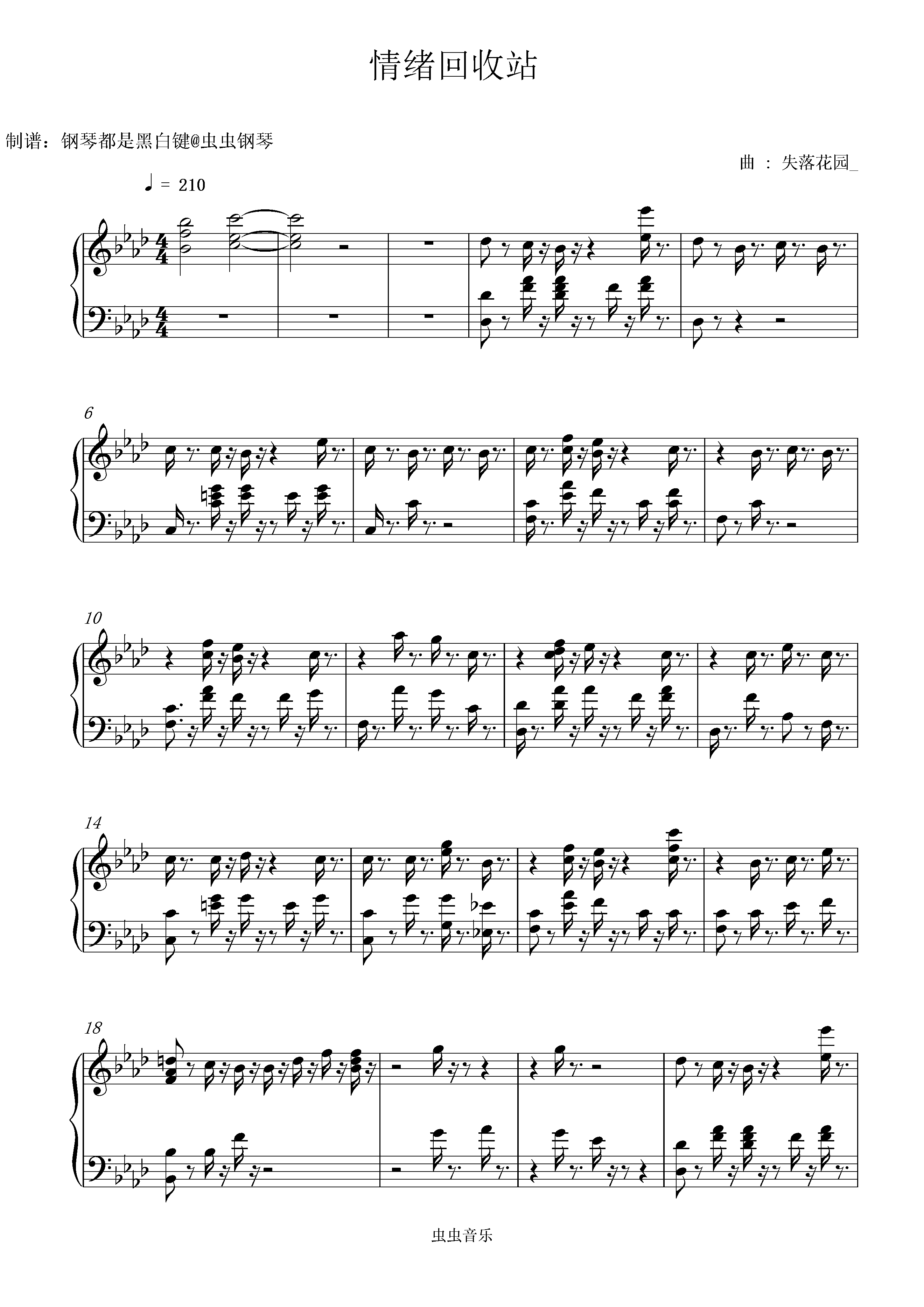 钢琴谱:《情绪回收站》“你可以回去 但那里已经没有人了”|