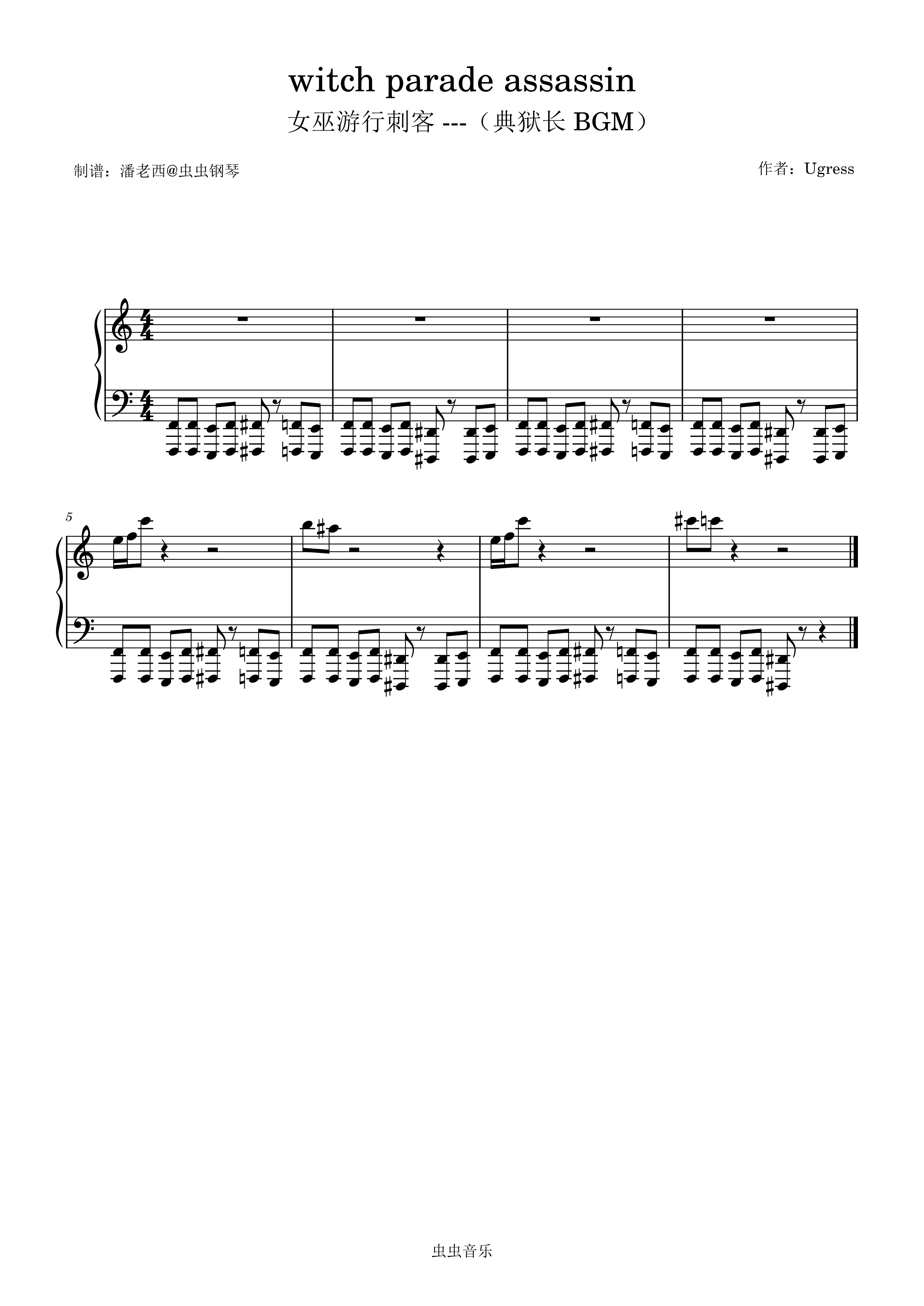 钢琴谱:女巫游行刺客 ---(典狱长 BGM)witch parade assassin