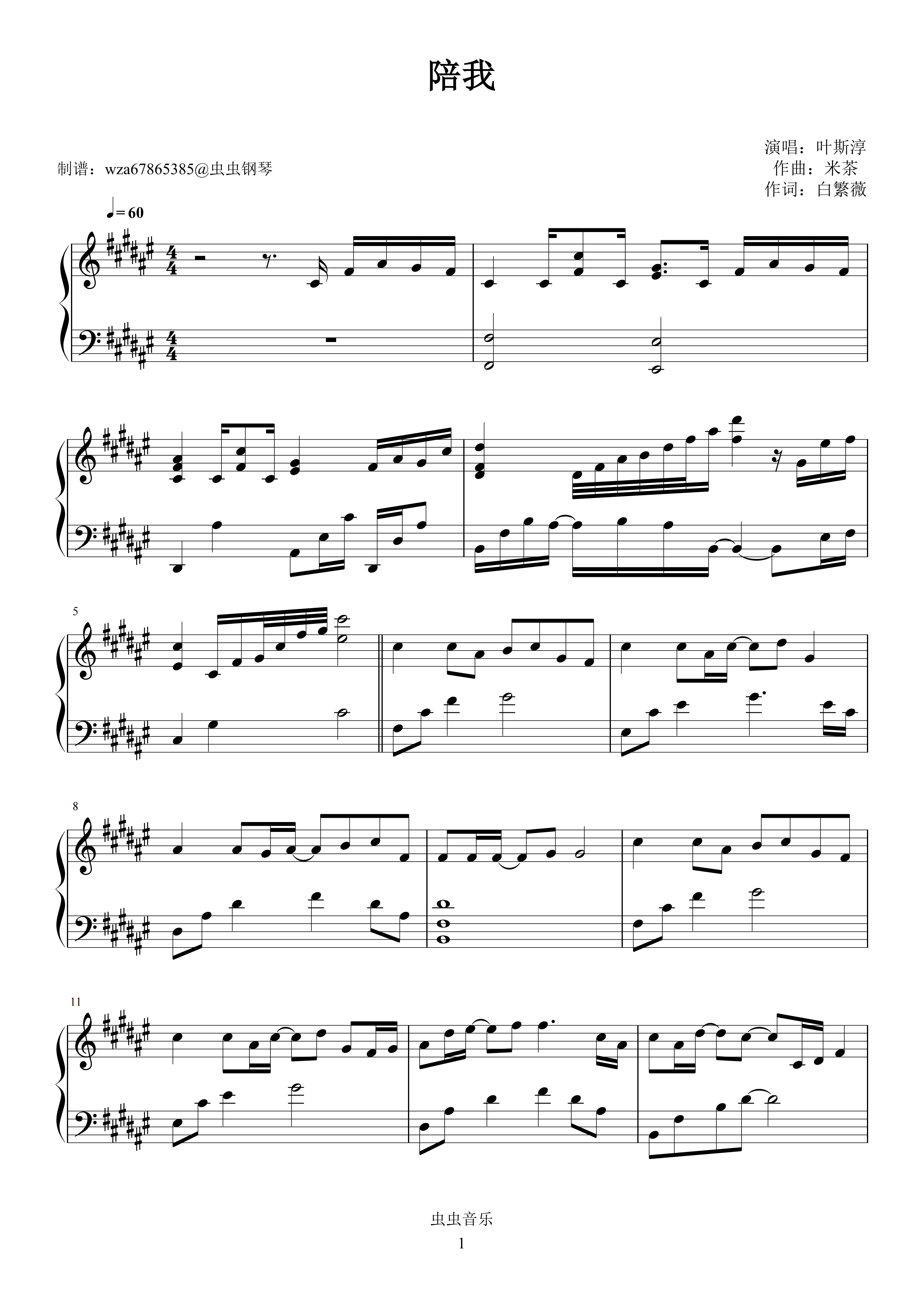 • 陪着你走钢琴简谱 F调 数字双手 唐书琛