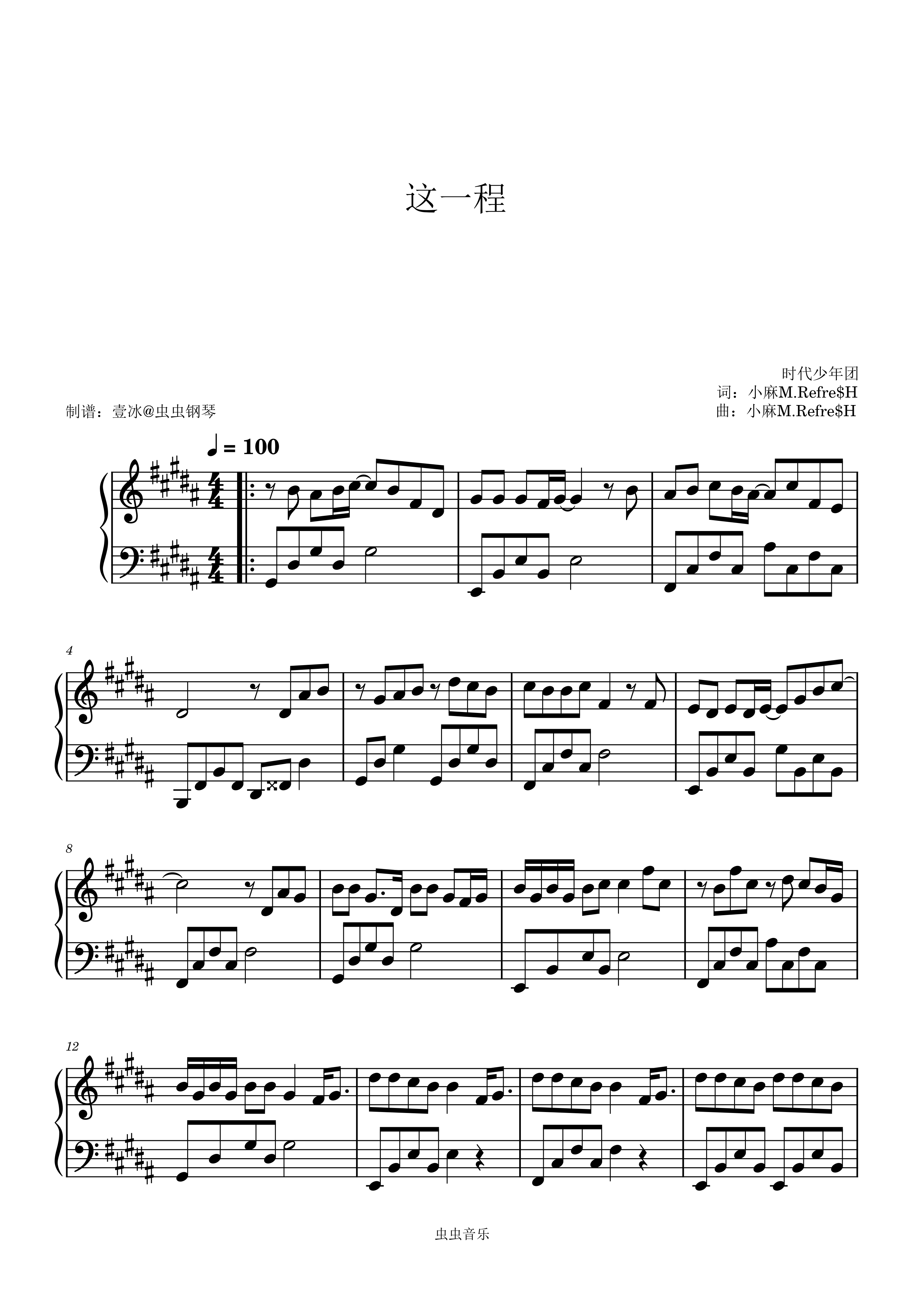 • 一程山路钢琴简谱 F#调 数字双手 毛不易