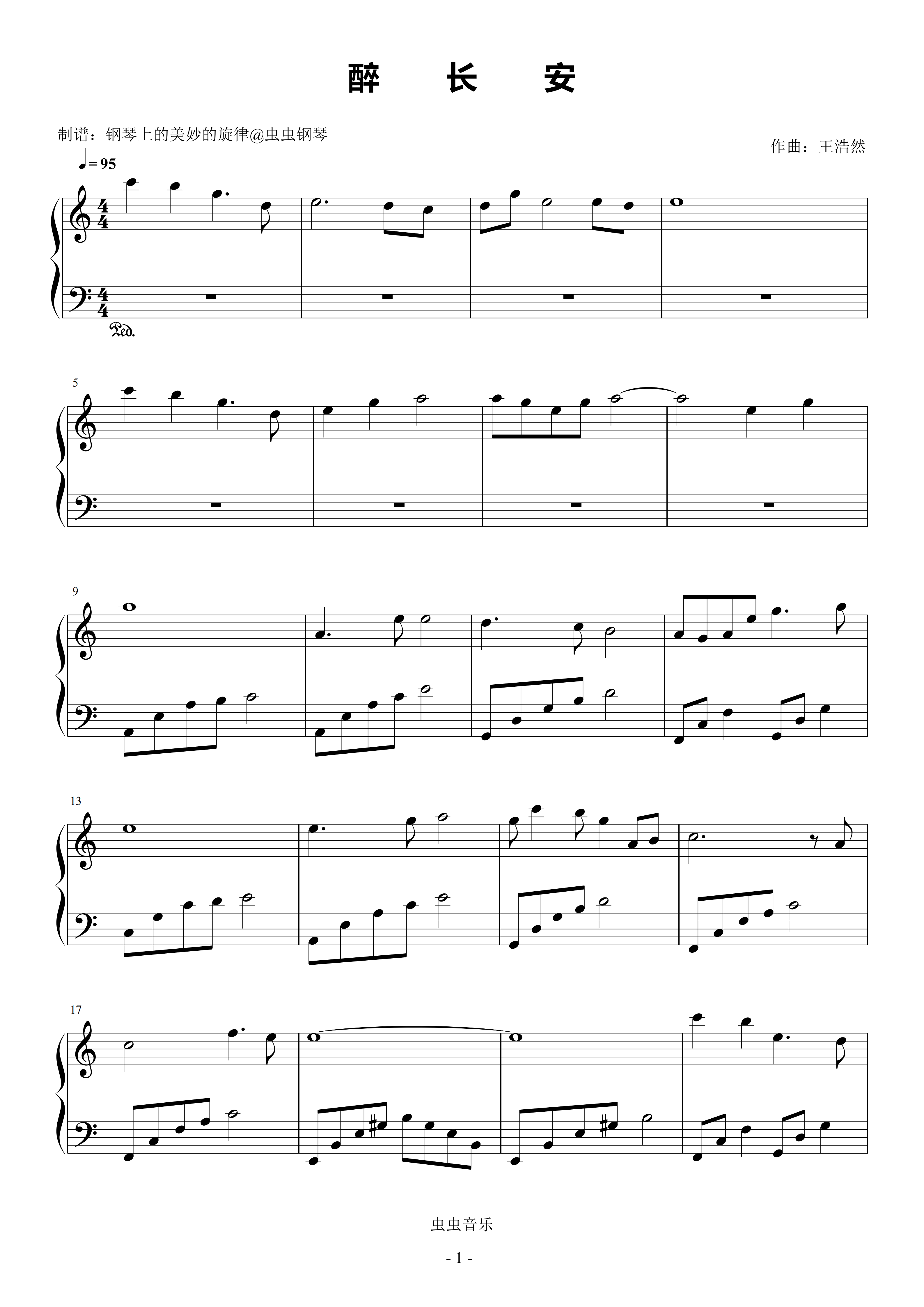 • 醉钢琴简谱 Bb调 数字双手 假寐