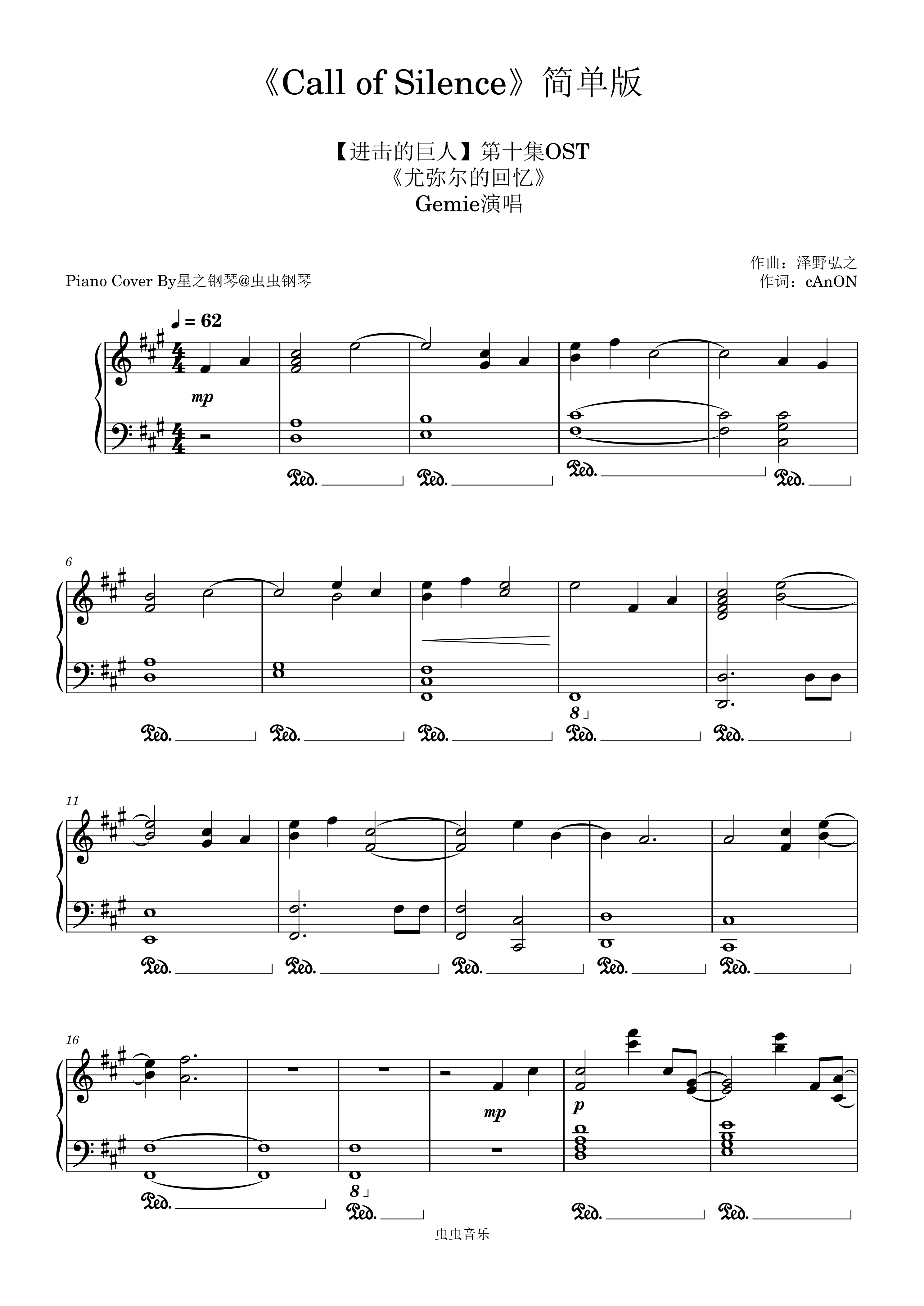 • Call of Silence钢琴简谱 A调 数字双手