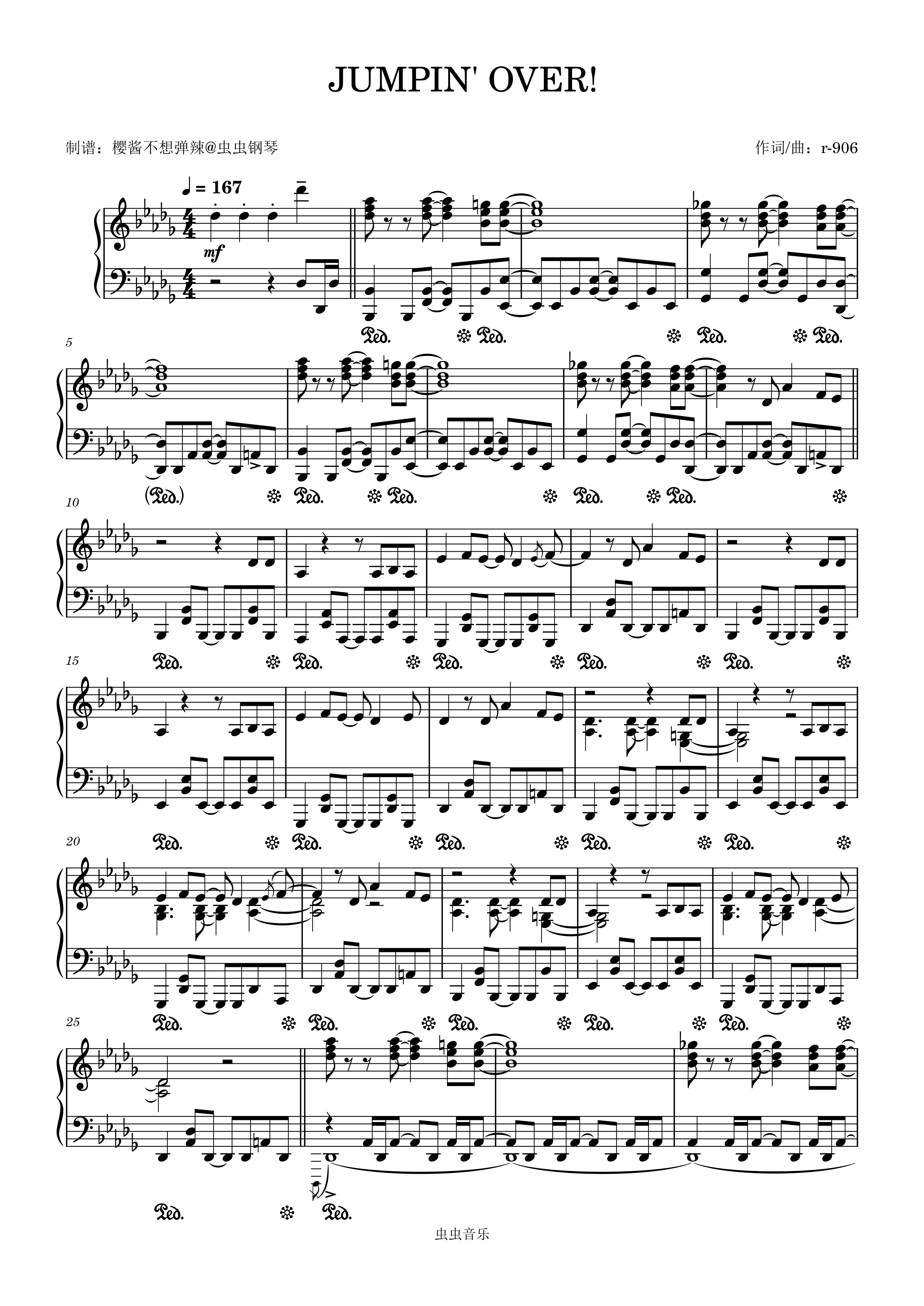 钢琴谱:JUMPIN’ OVER ! r-906/初音ミク