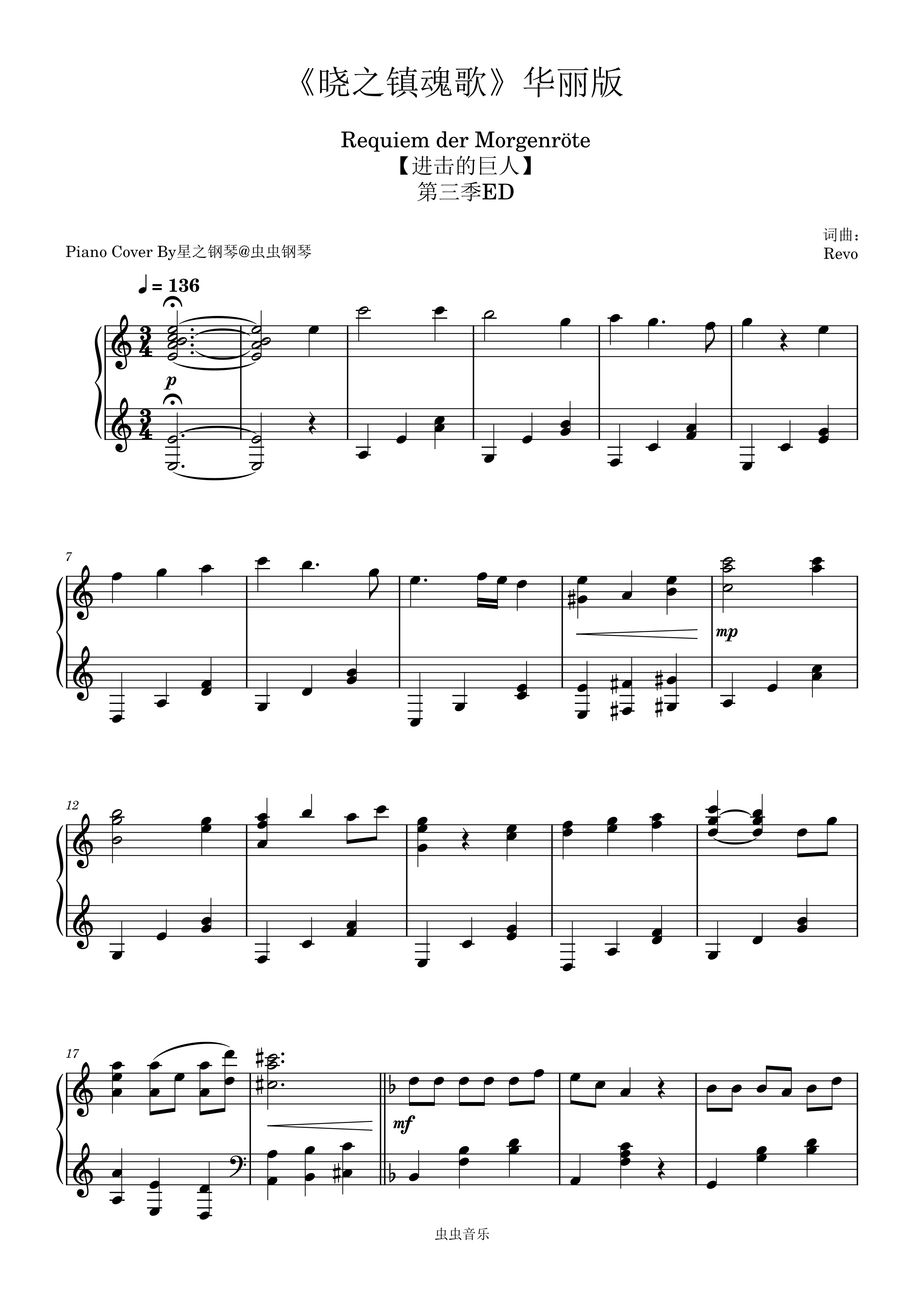 晓之镇魂歌钢琴简谱 数字双手 Revo
