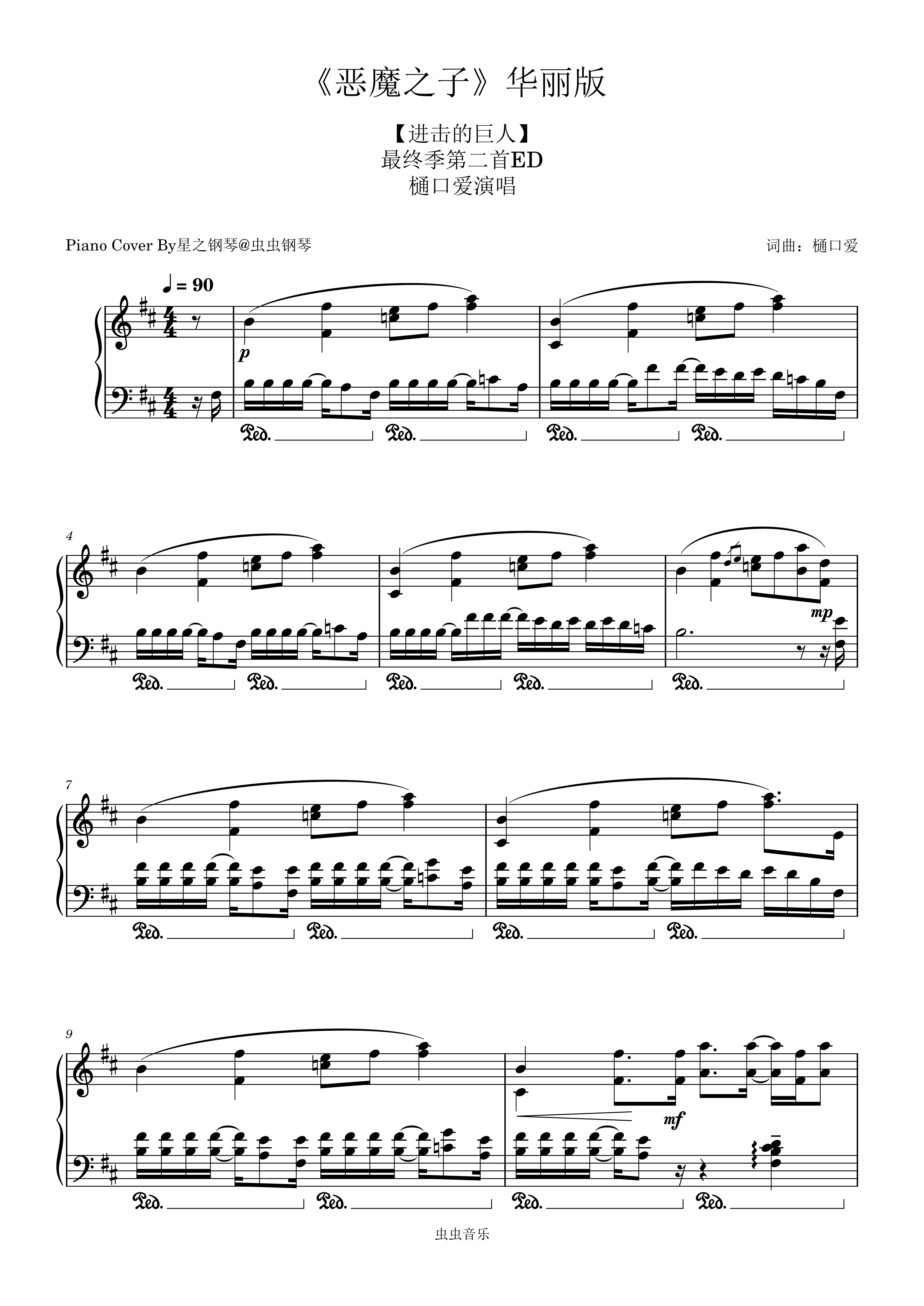 钢琴谱:【进击的巨人】樋口爱《恶魔之子》华丽演奏版~星之钢琴~