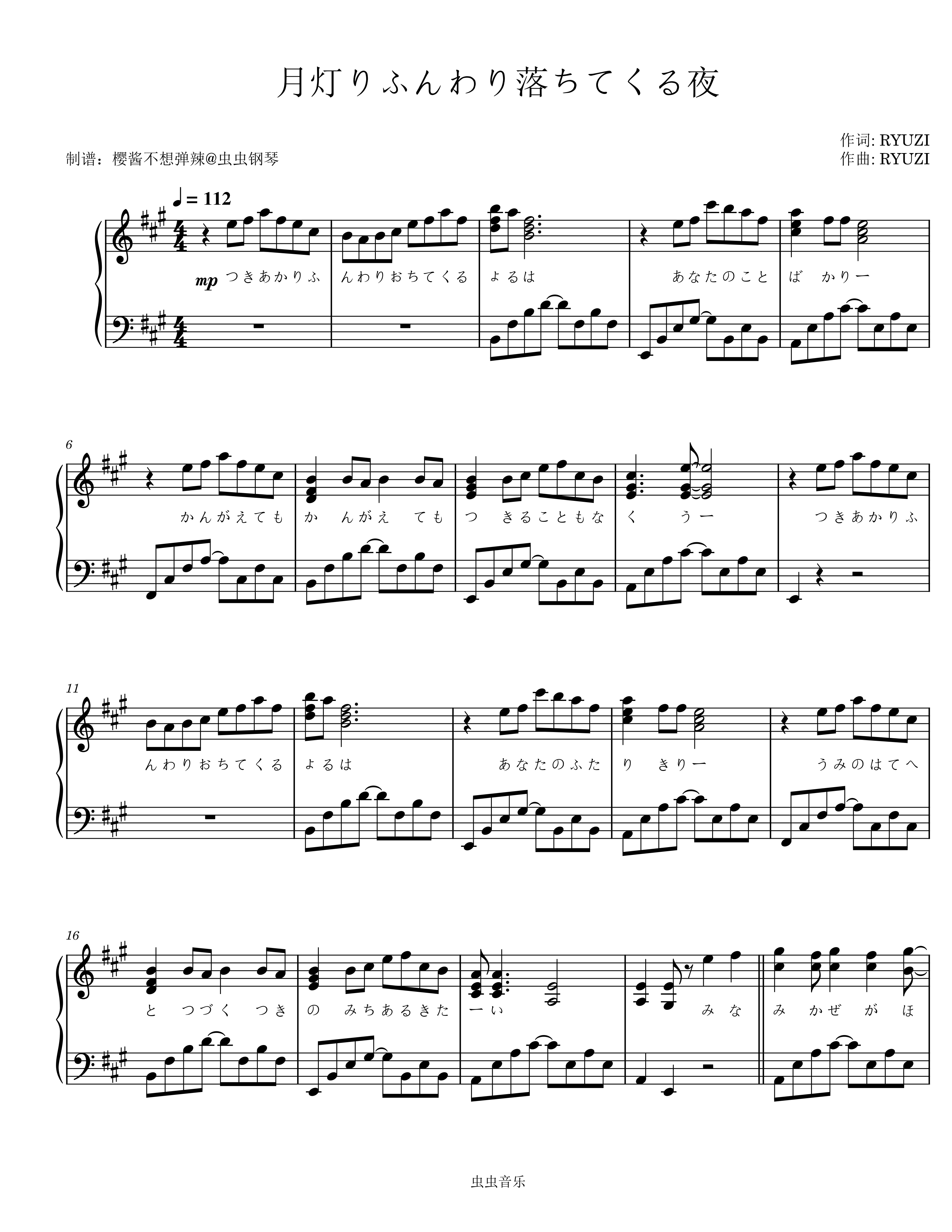 月灯りふんわり落ちてくる夜钢琴简谱 数字双手