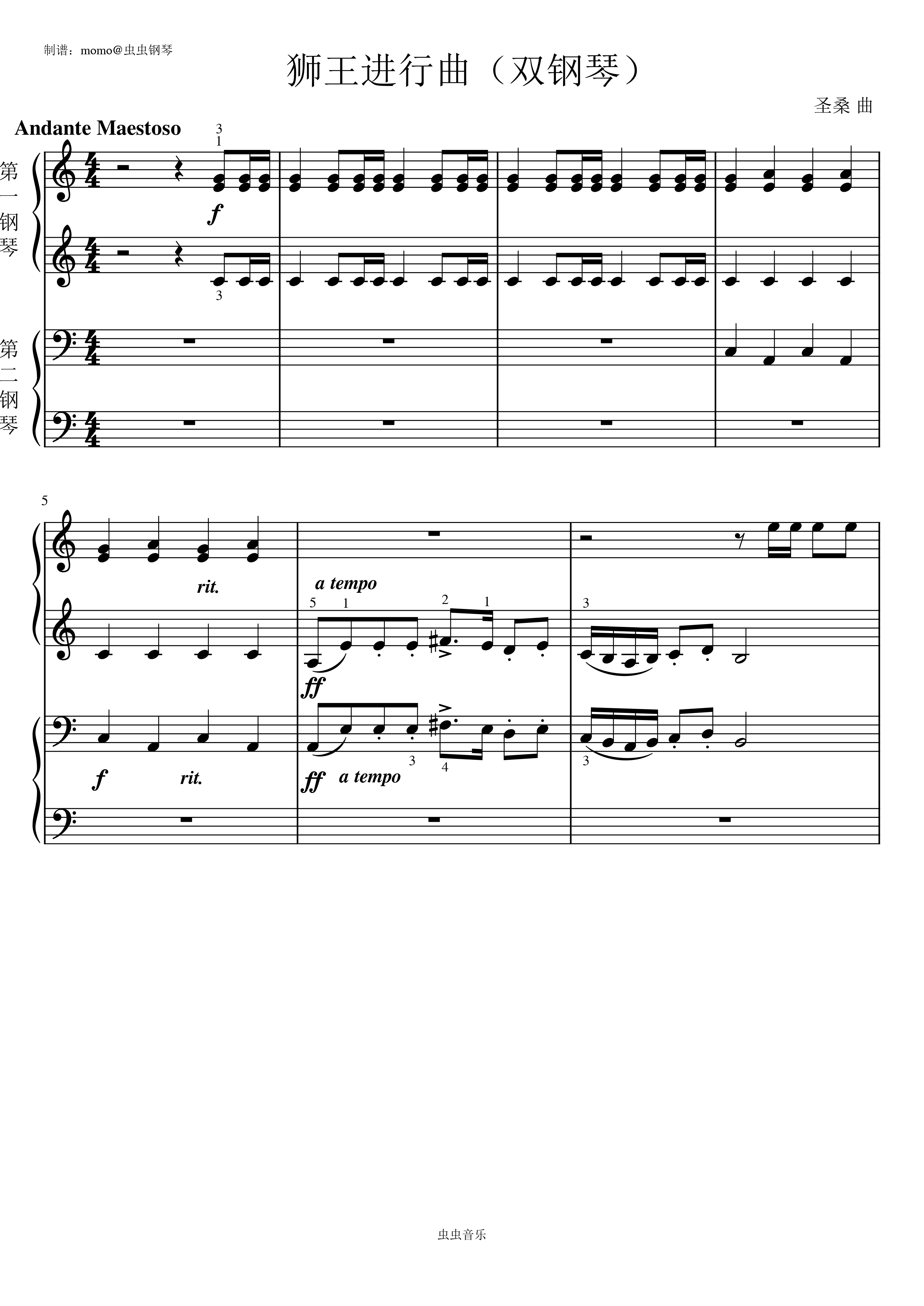 钢琴谱:圣桑童话钢琴练琴练习曲《狮王进行曲》双钢琴