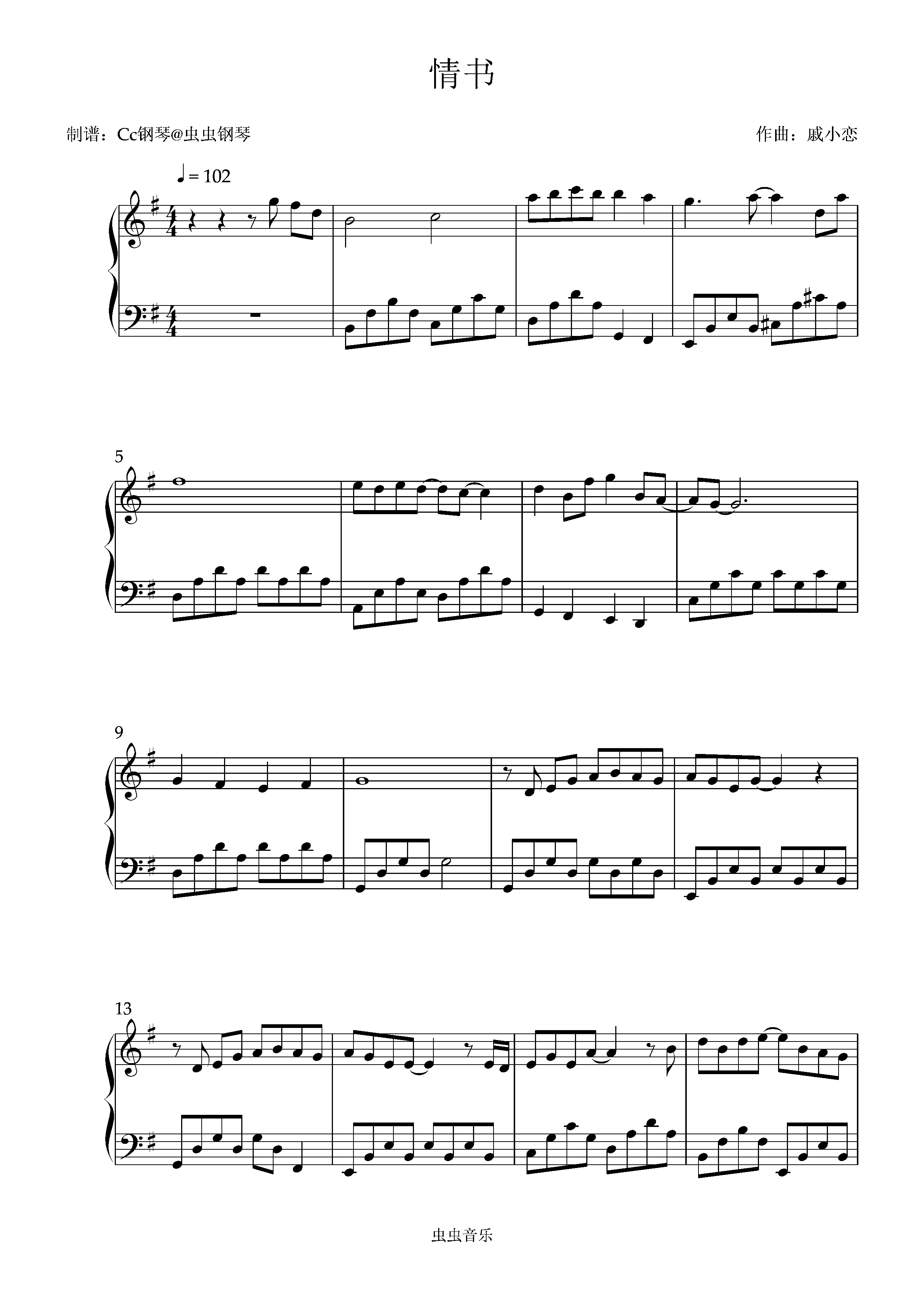 • 情书钢琴简谱 C调 数字双手 张荣昊