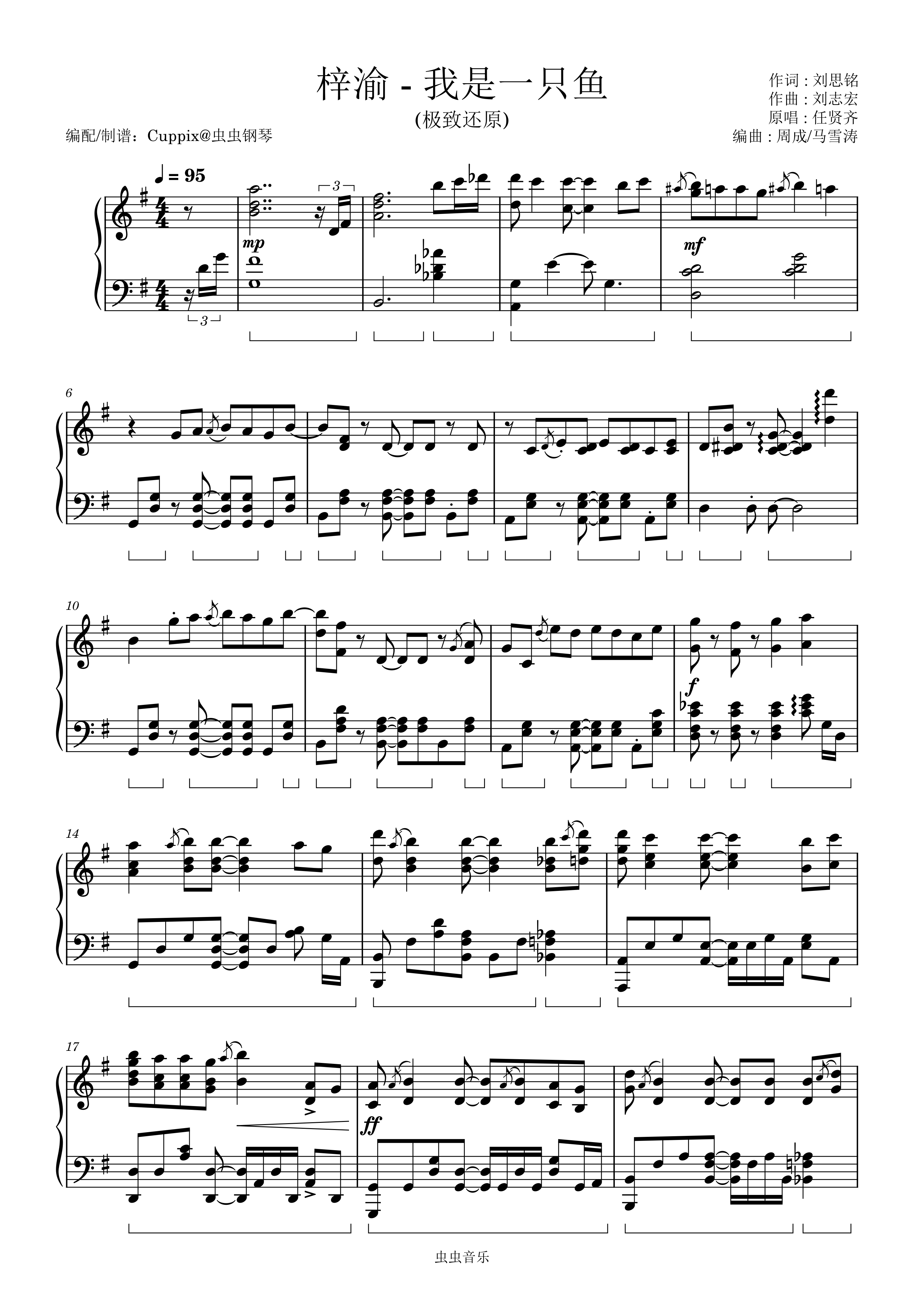钢琴谱:梓渝《我是一只鱼》极致还原版