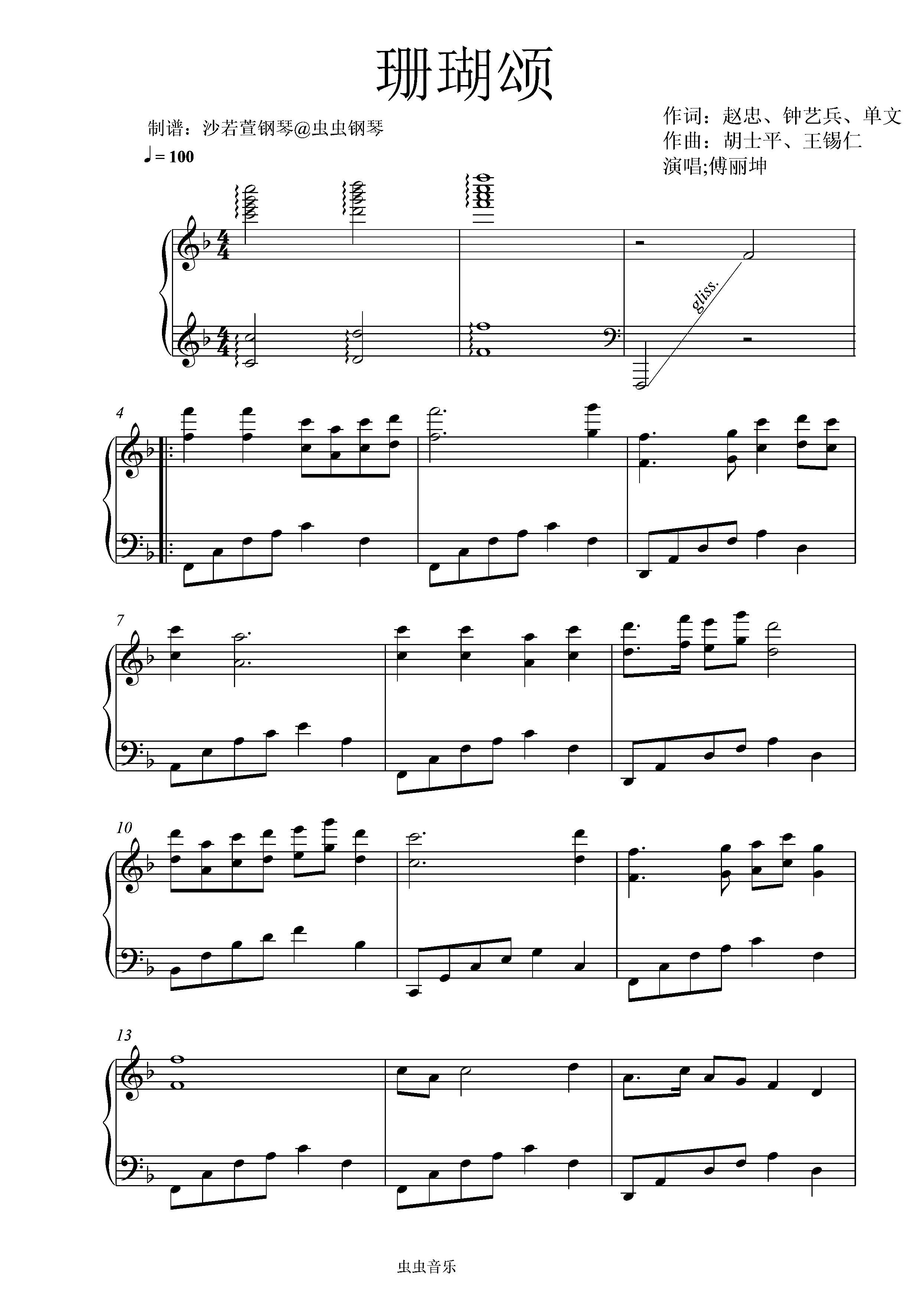 • 珊瑚海钢琴简谱 G调 数字双手 方文山