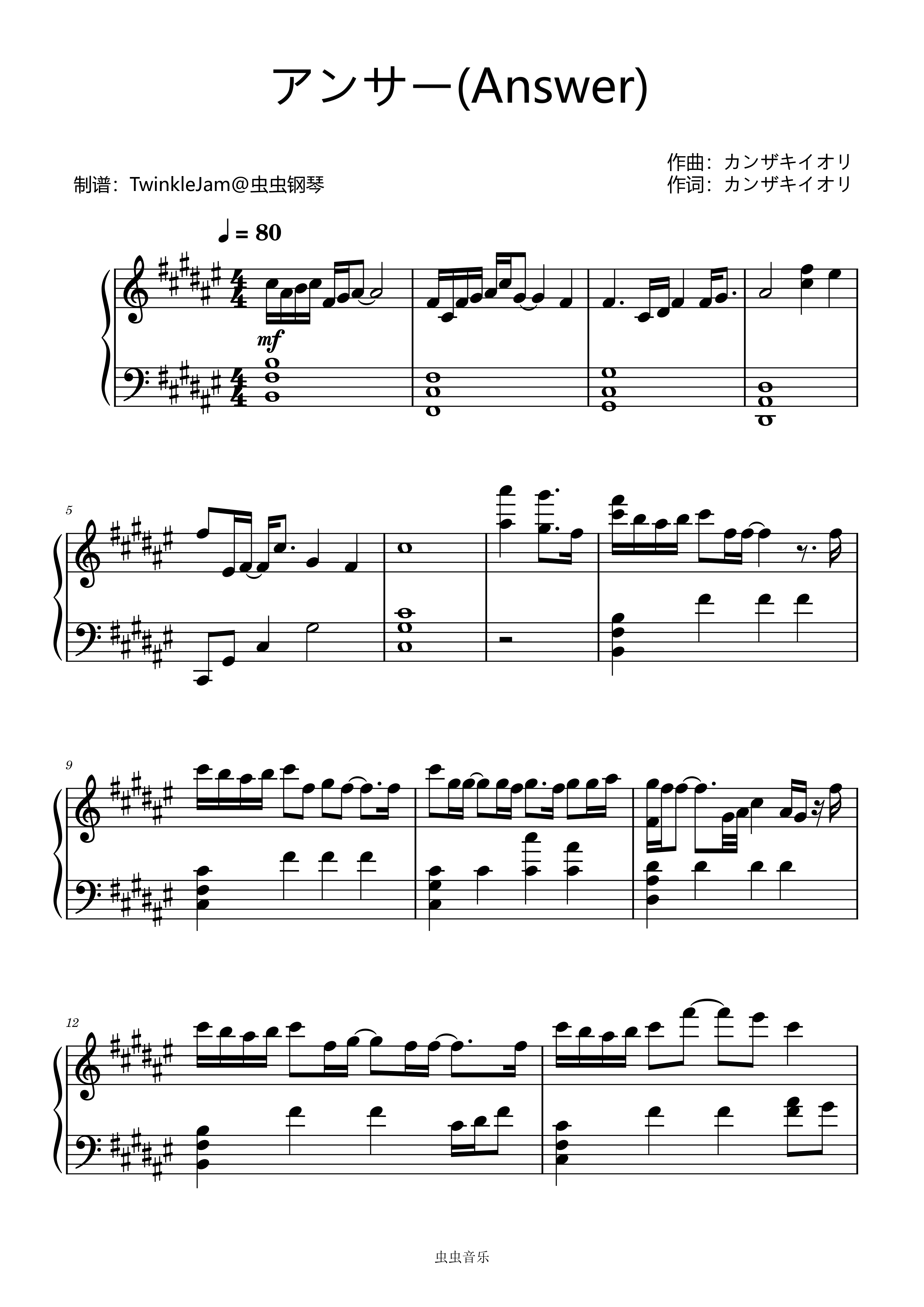 アンサー钢琴简谱 数字双手 カンザキイオリ
