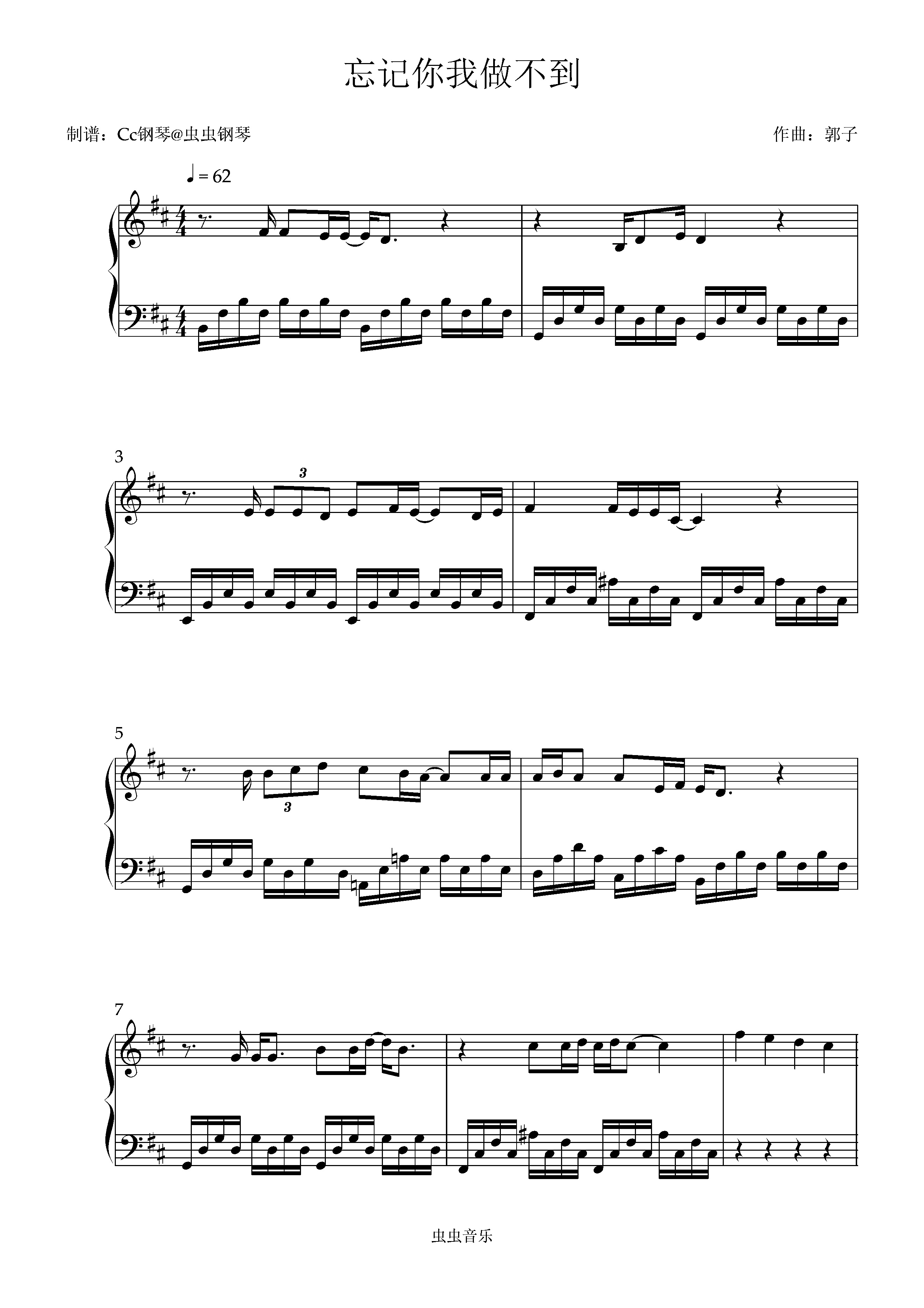 钢琴谱:忘记你我做不到 原调 好听易上手