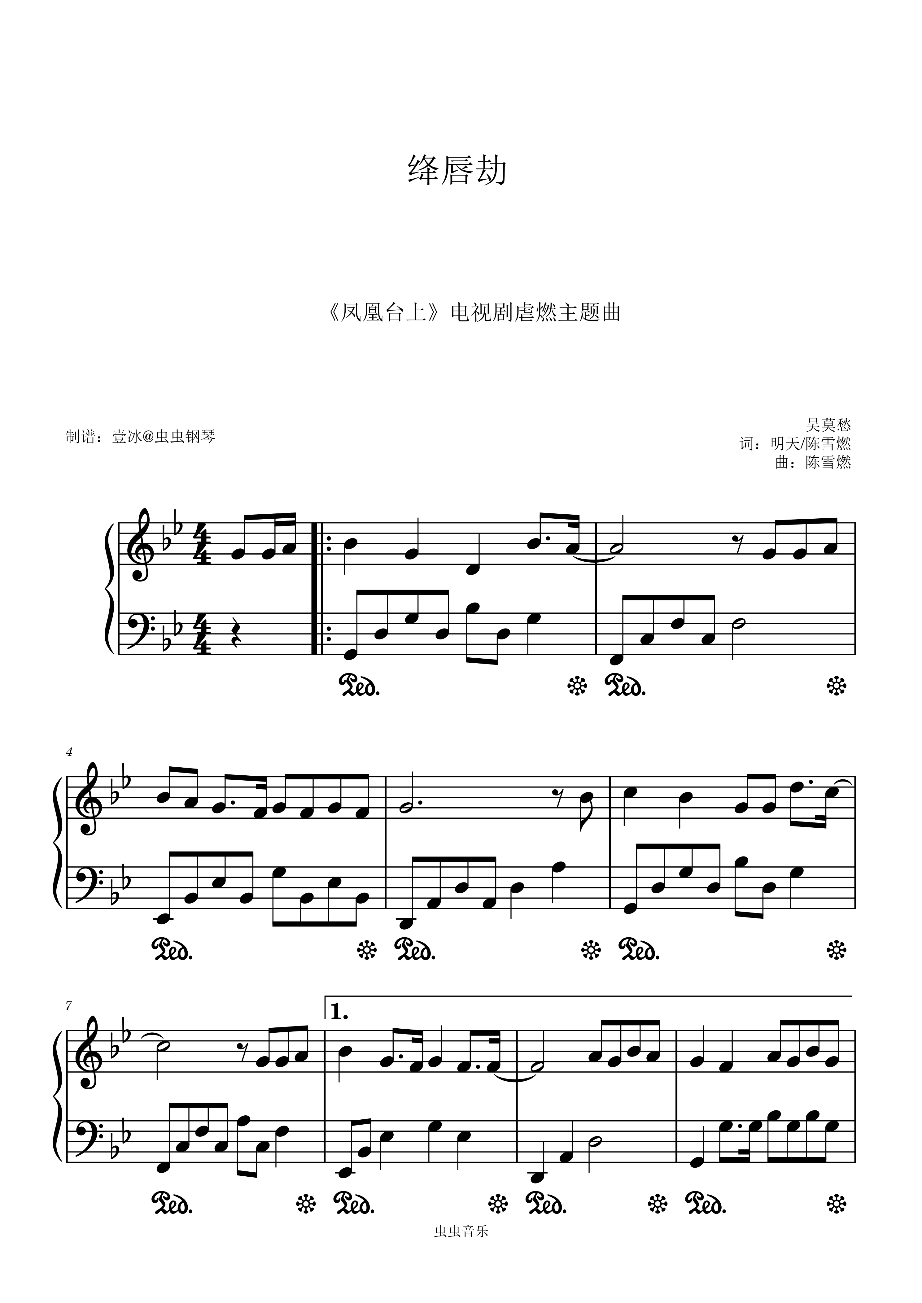 钢琴谱:绛唇劫 《凤凰台上》电视剧虐燃主题曲 原调