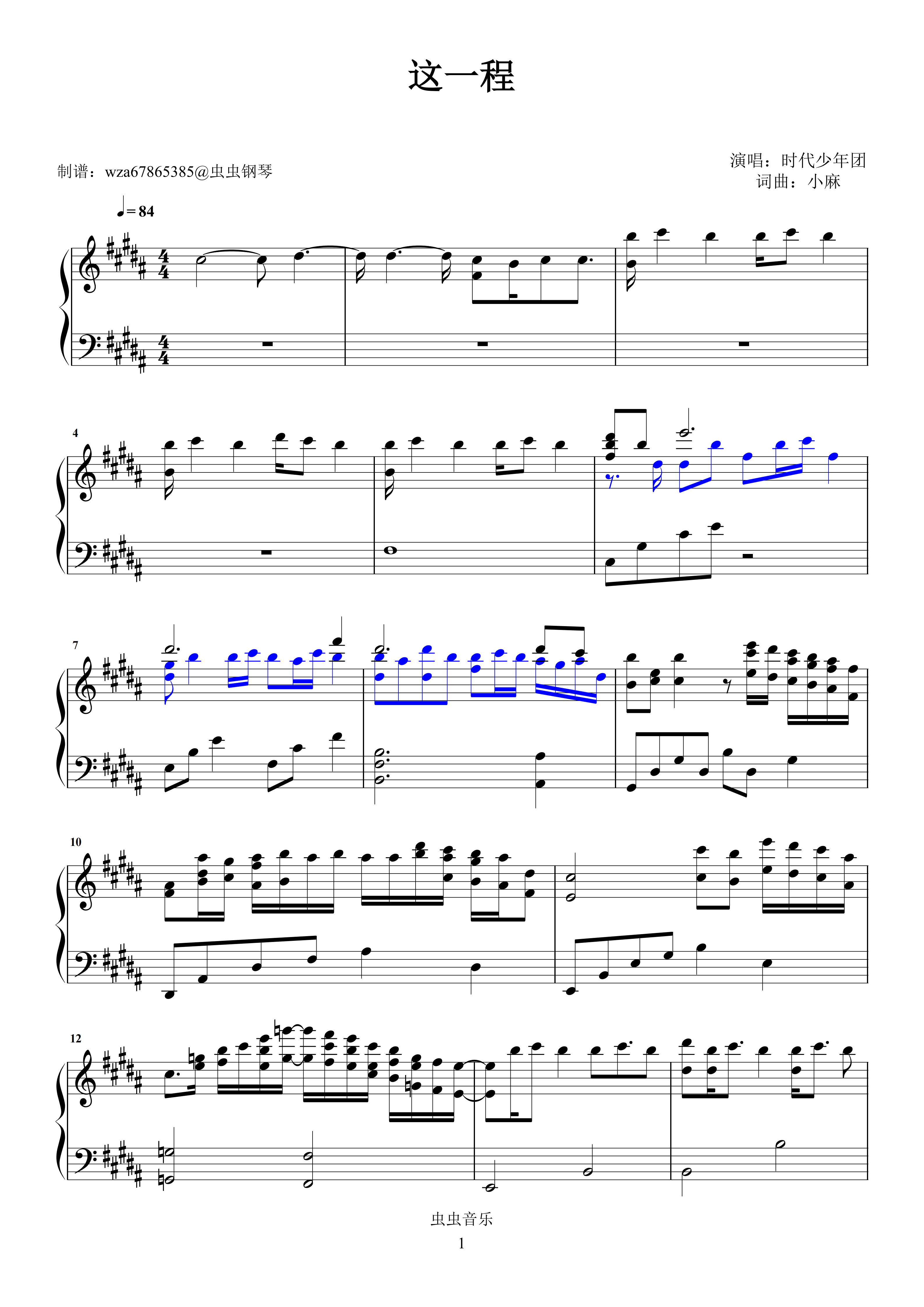 • 一程山路钢琴简谱 F#调 数字双手 毛不易