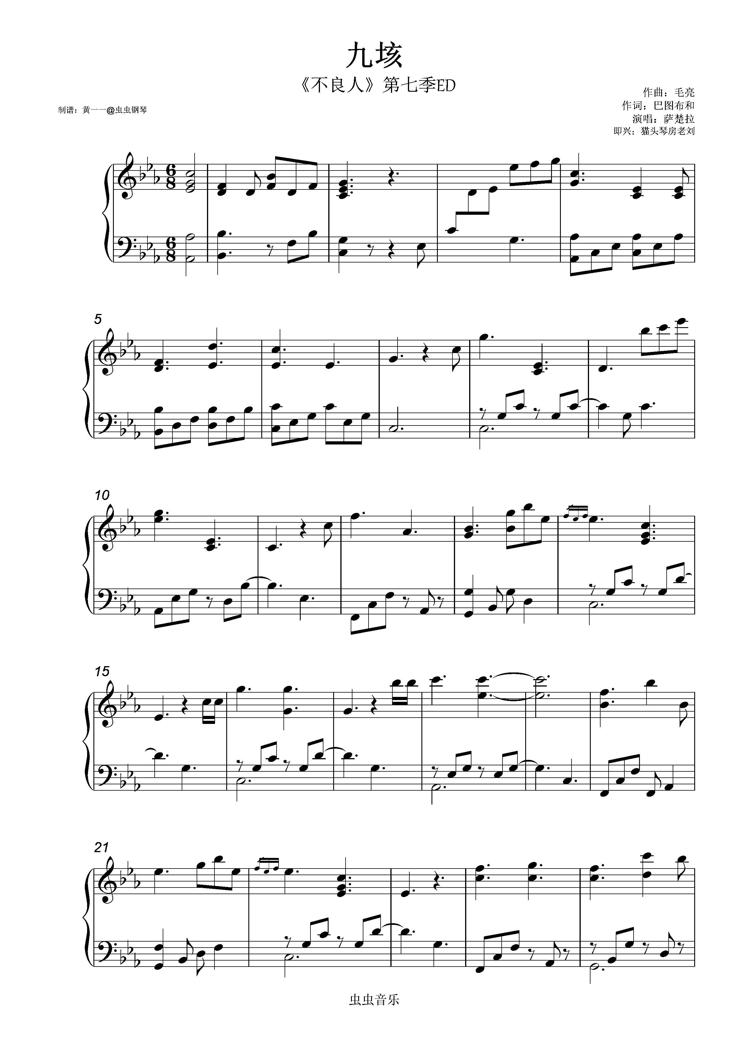 钢琴谱:九垓(99%还原)《不良人》第七季ED|即兴、降臣BGM