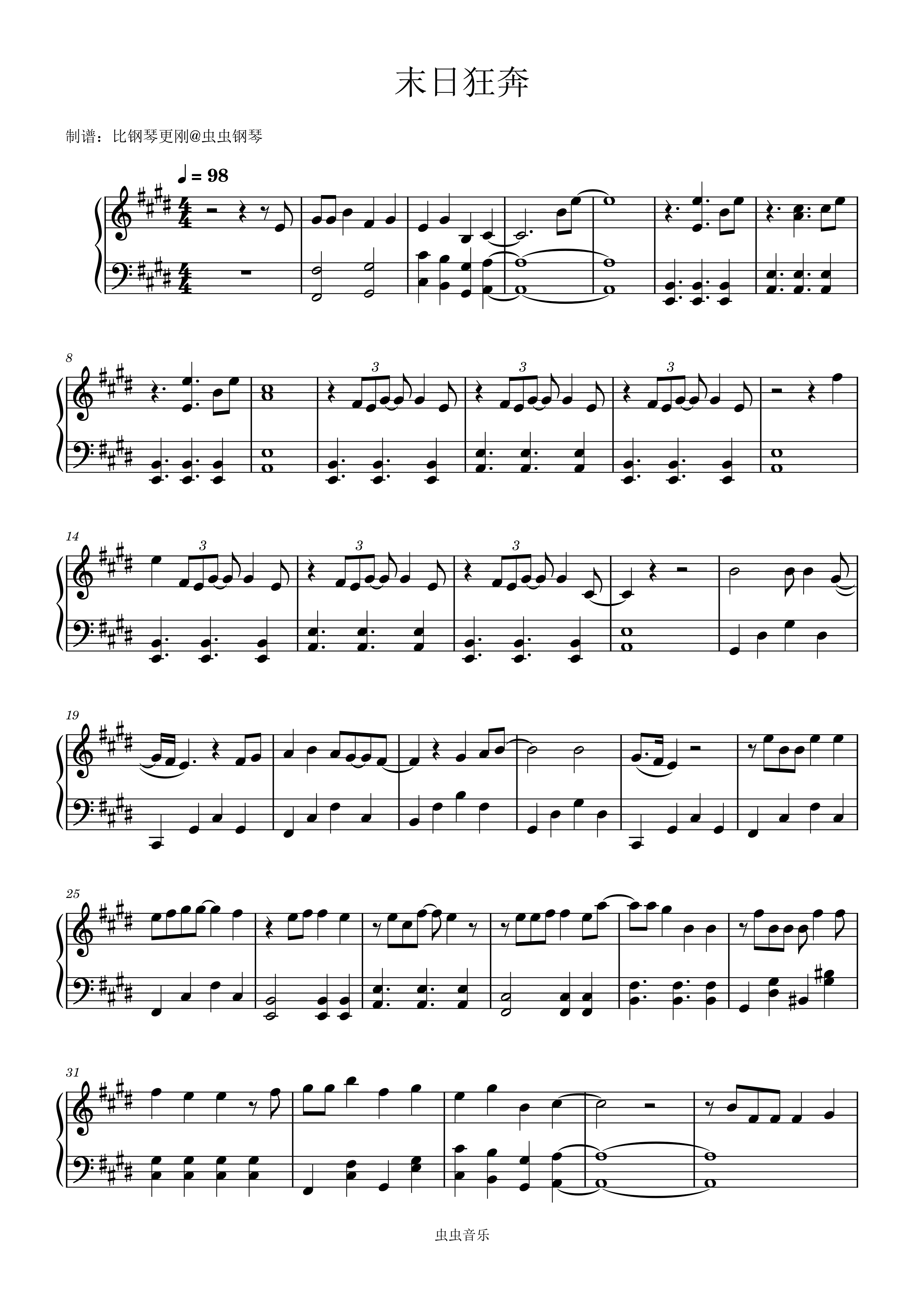末日狂奔钢琴简谱 数字双手