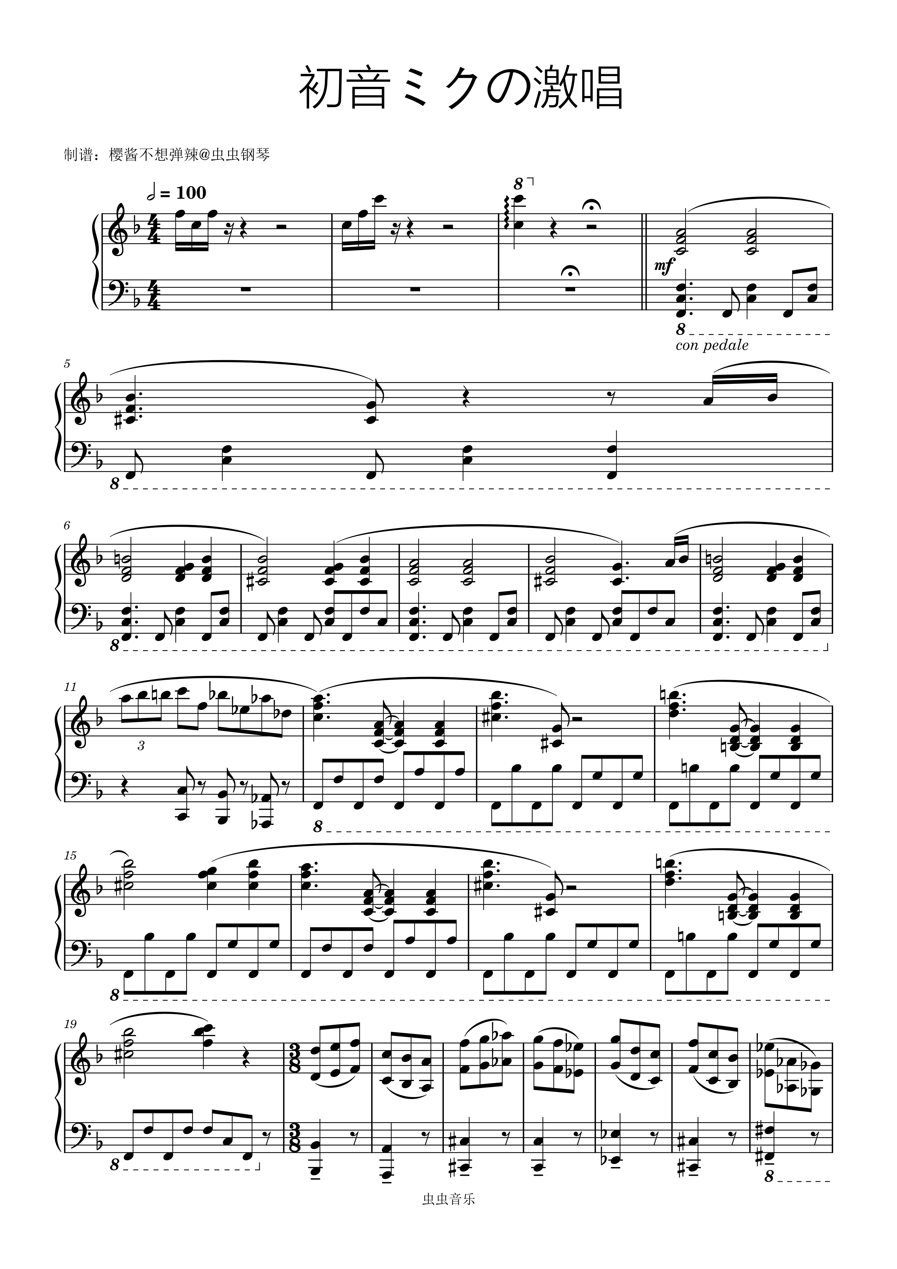钢琴谱:初音ミクの激唱 (初音未来的激唱)cosMo@暴走P/初音ミク