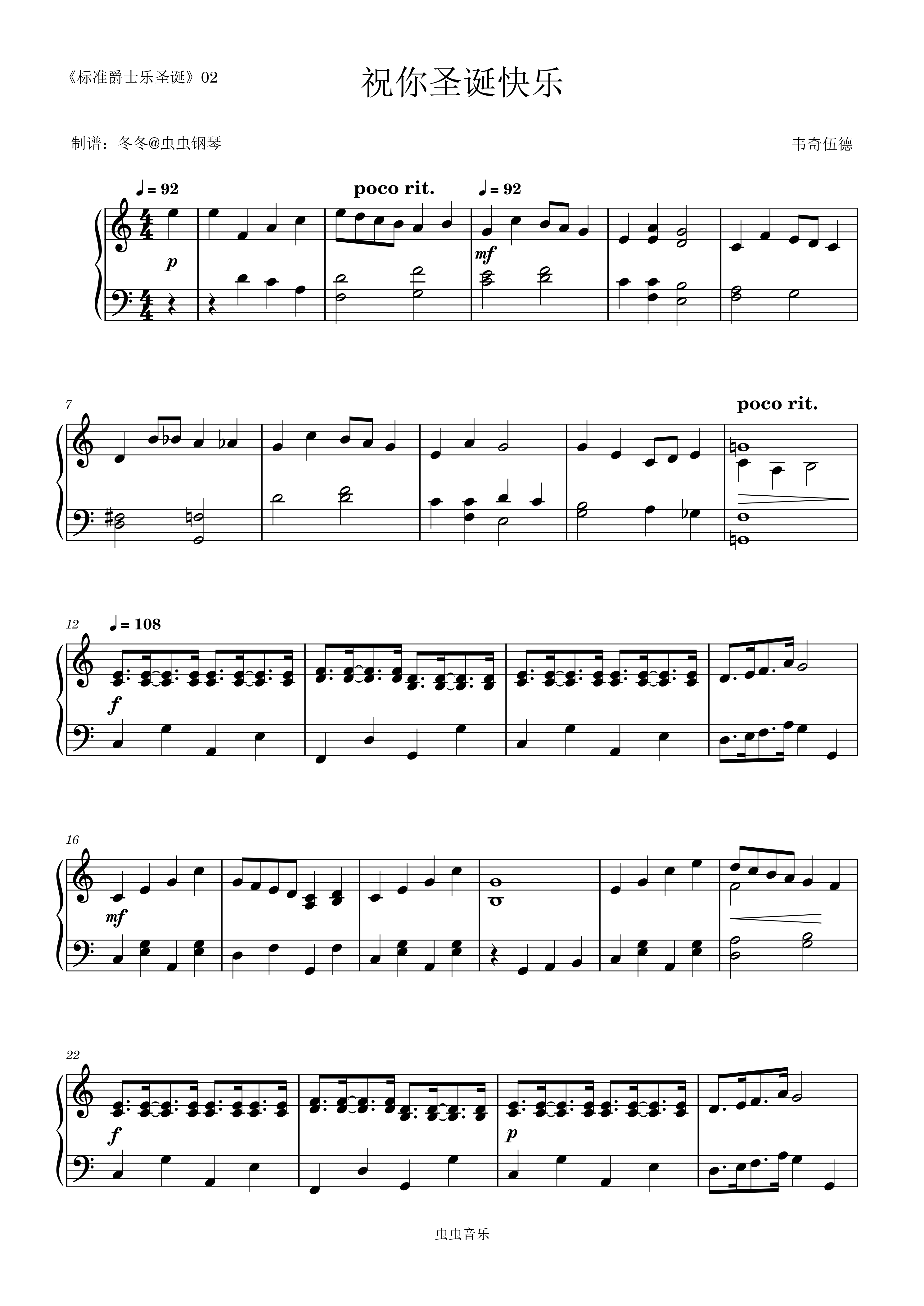 • 祝你圣诞快乐钢琴简谱 F调 数字双手