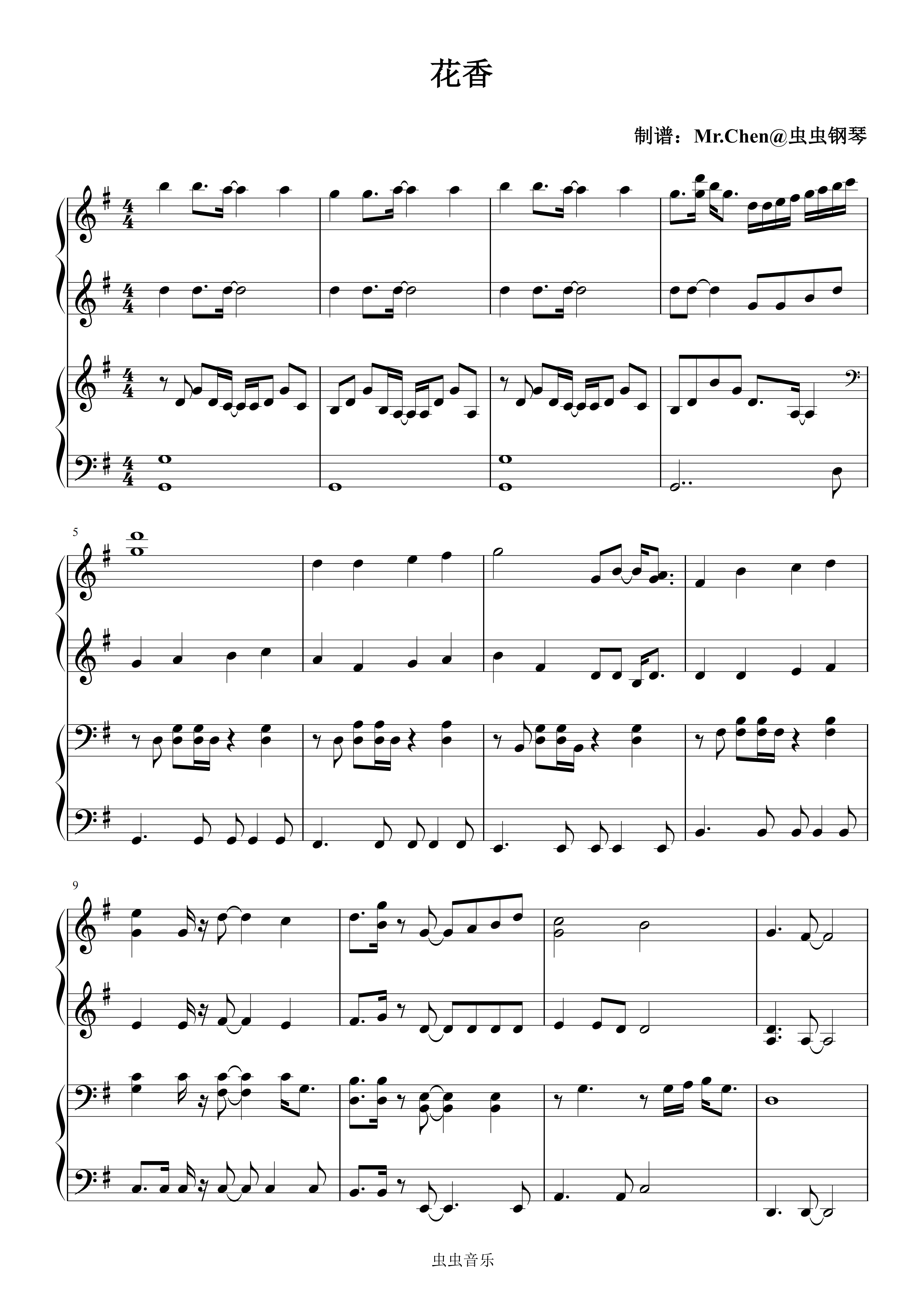 • 花香钢琴简谱 G调 数字双手 陈信荣