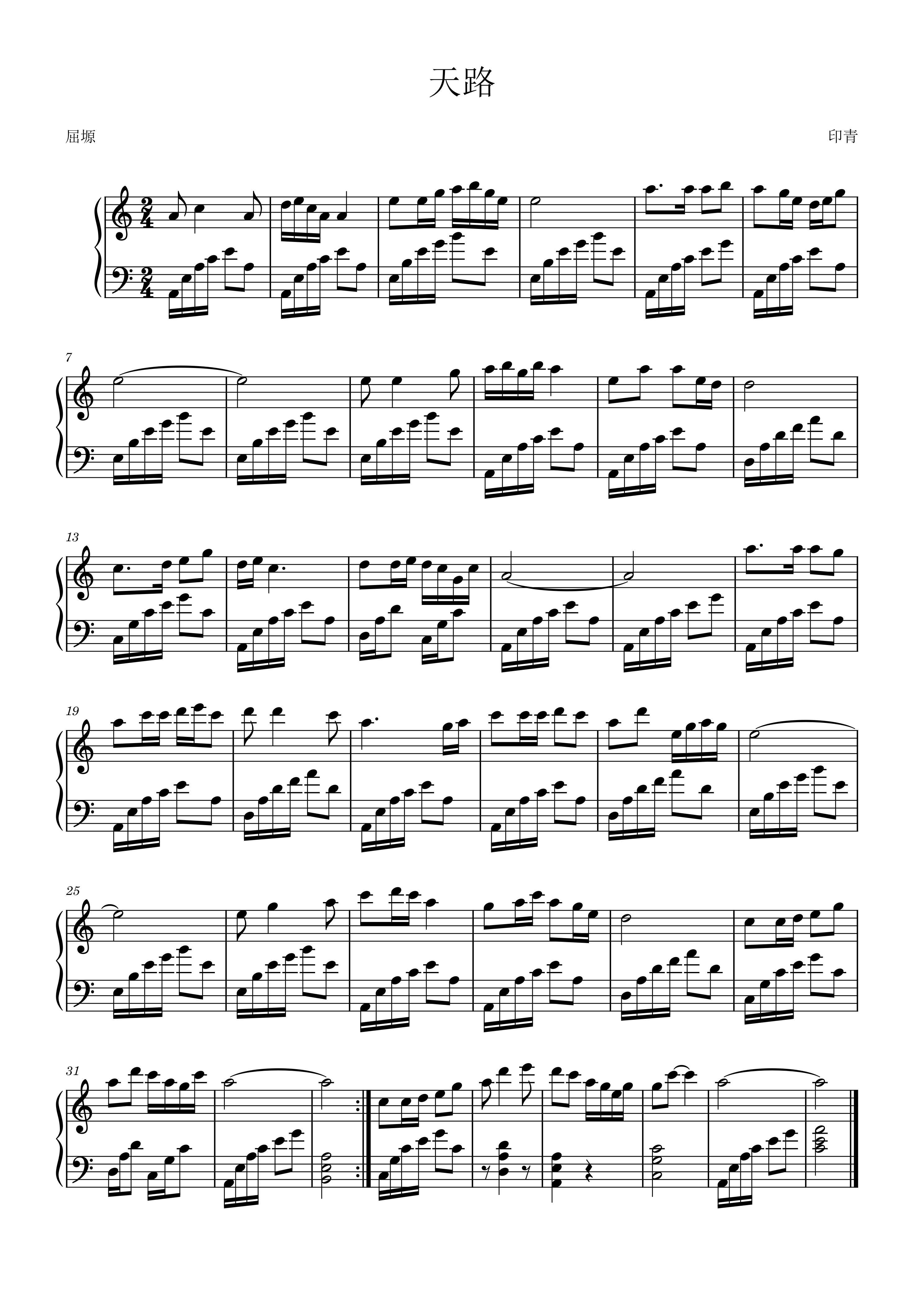 • 天路钢琴简谱 C调 数字双手 屈塬