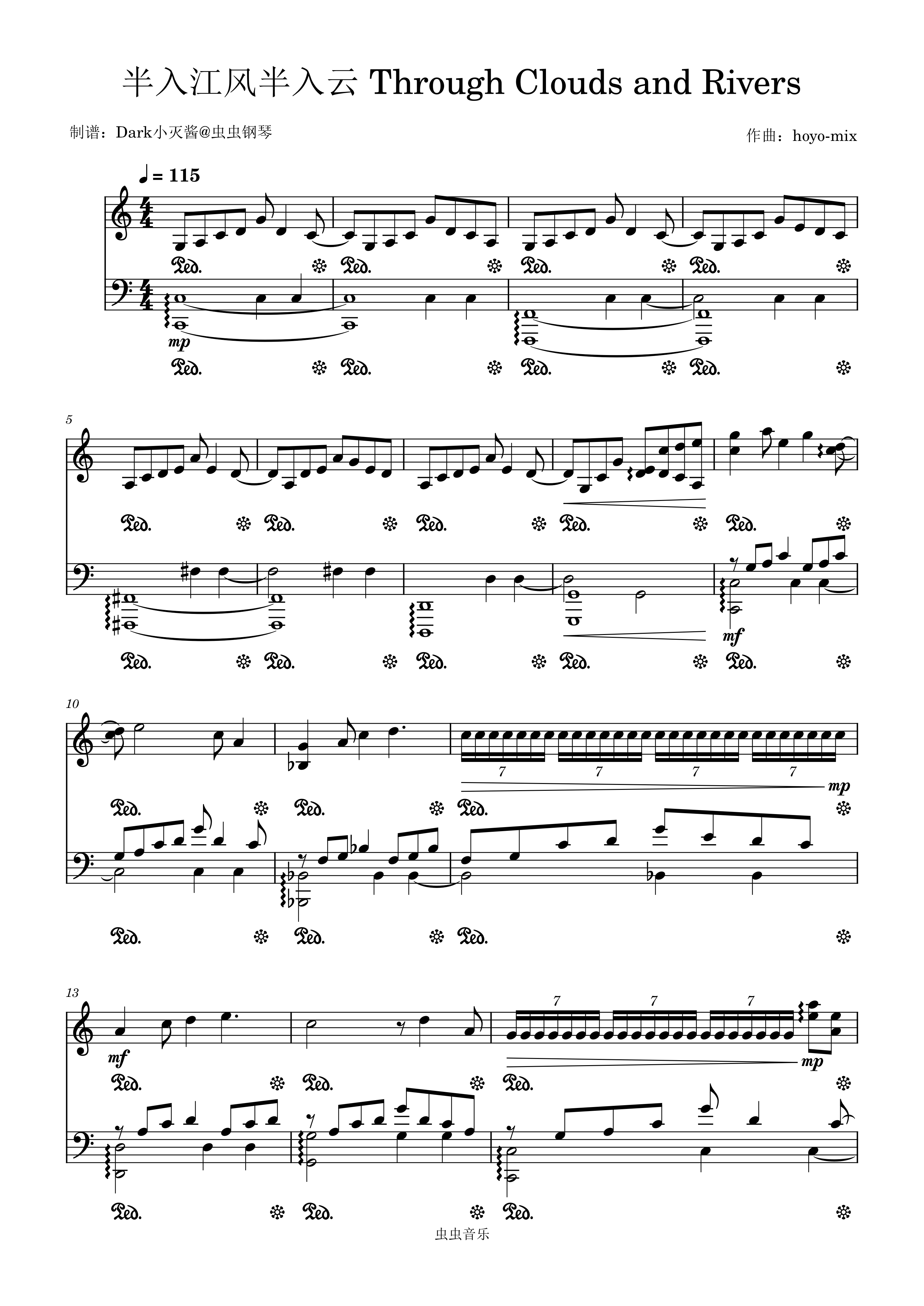 钢琴谱:【原神·沉玉谷】半入江风半入云 Through Clouds and Rivers