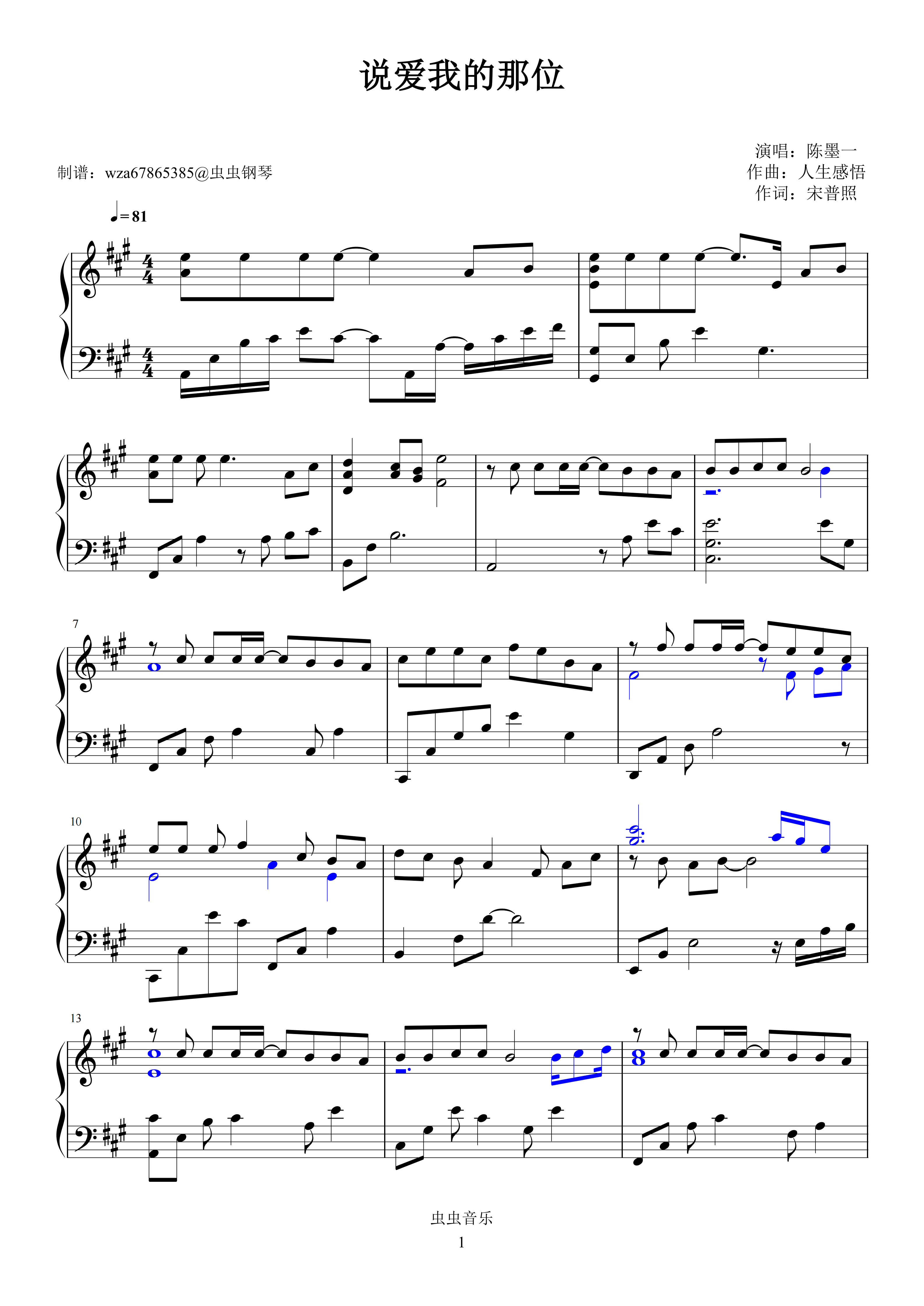 • 说爱钢琴简谱 D调 数字双手 赵小潼