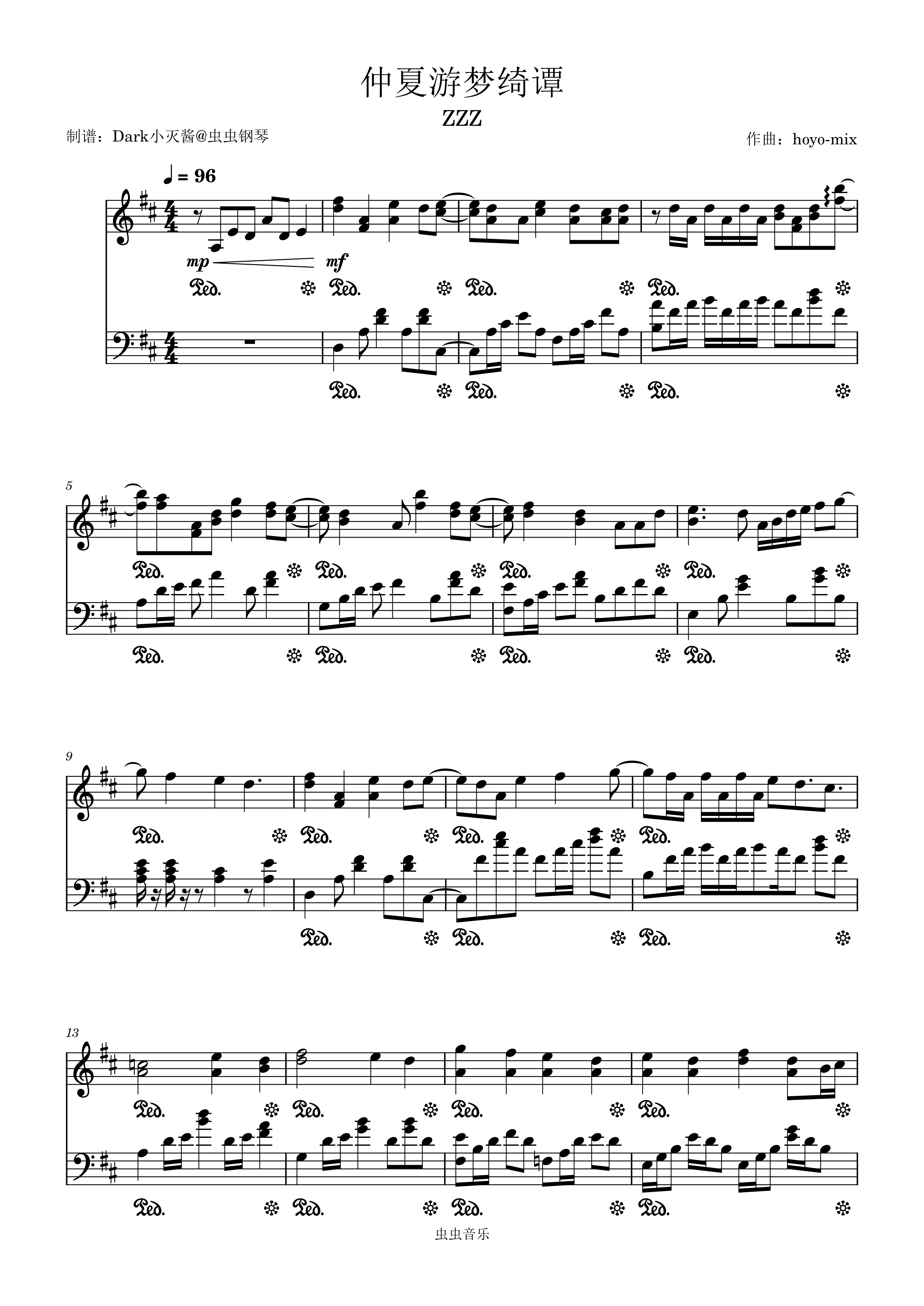 钢琴谱:【绝区零】仲夏游梦绮谭