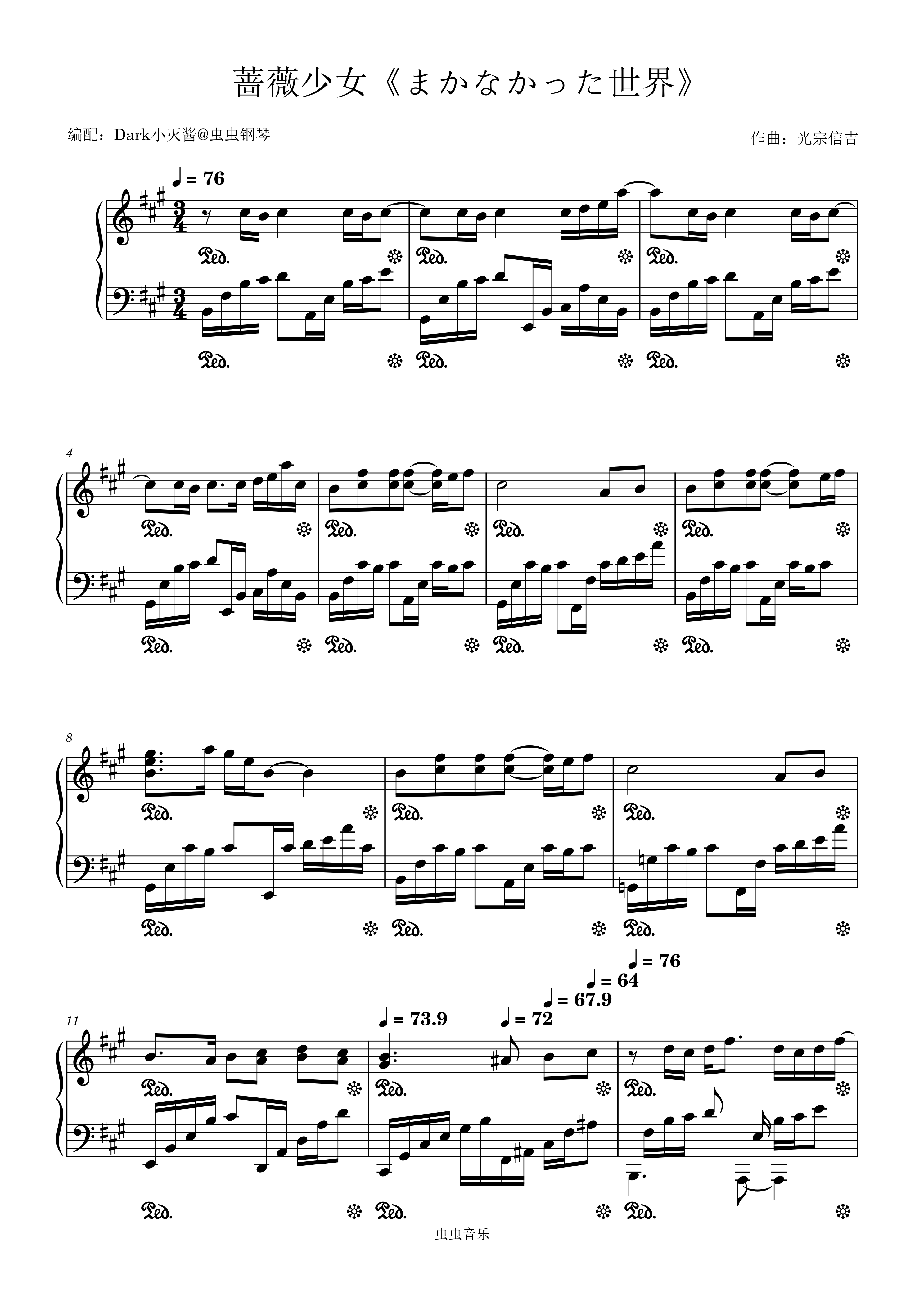 钢琴谱:【蔷薇少女】まかなかった世界