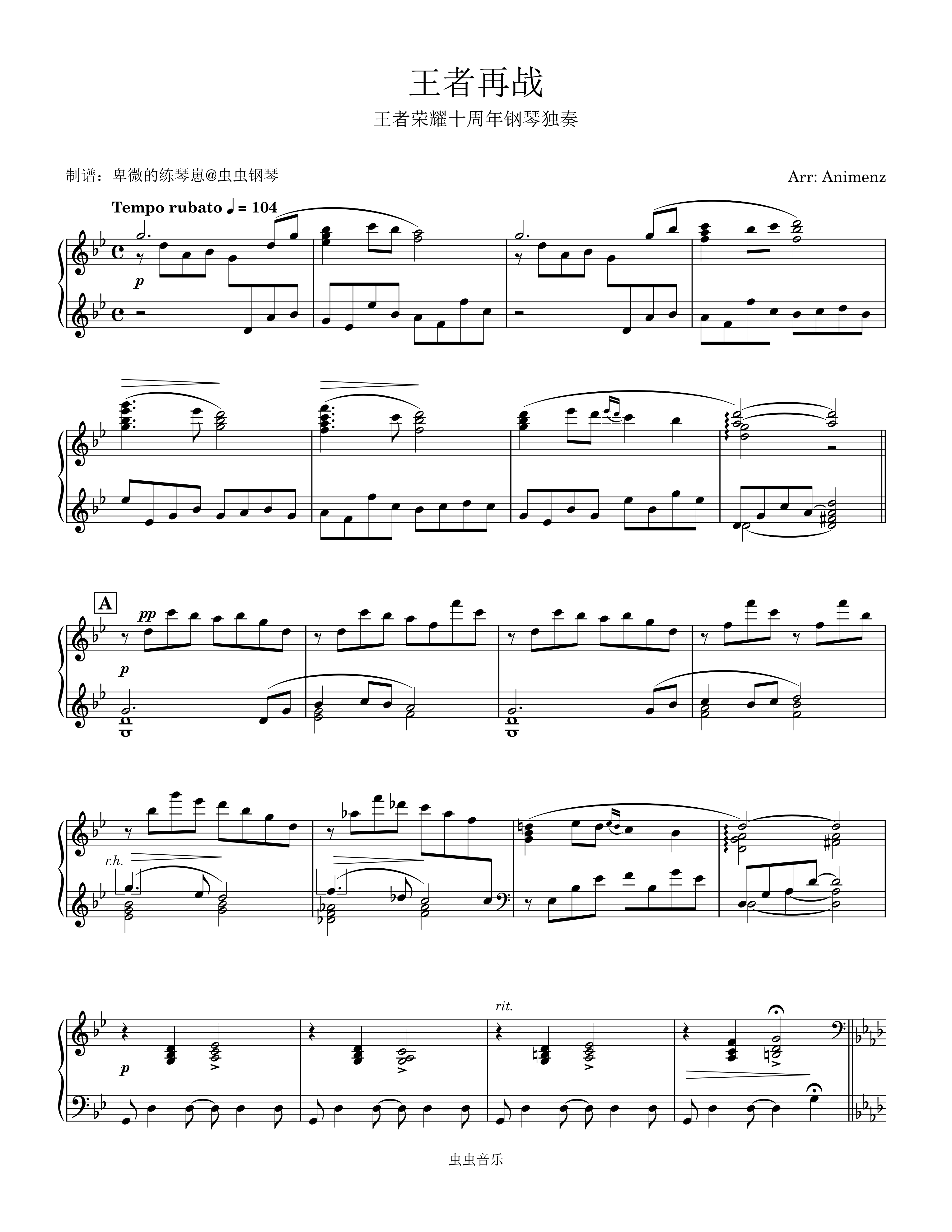 钢琴谱:[Animenz] - 王者再战 王者荣耀十周年纪念 [转录]