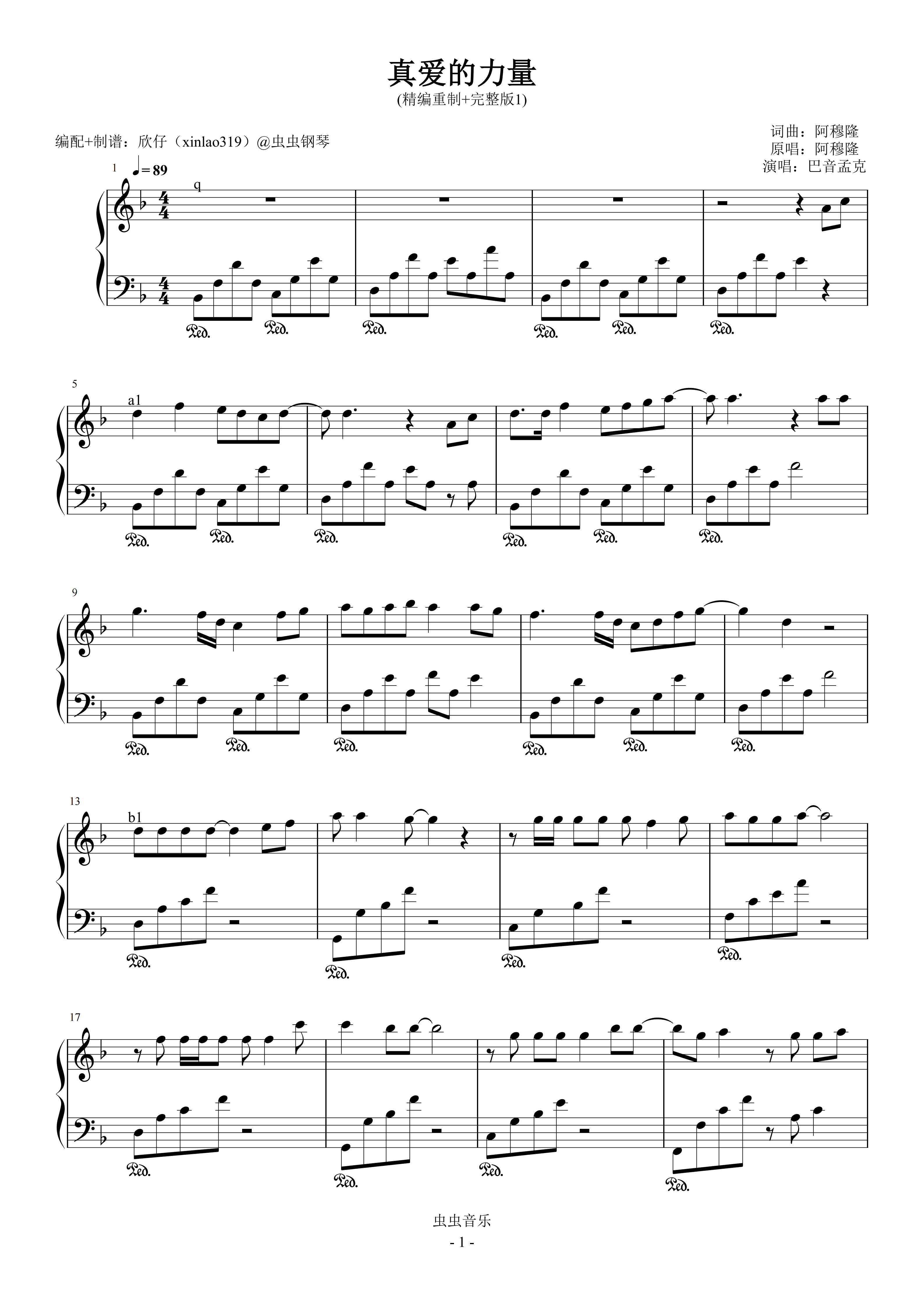 钢琴谱:真爱的力量(F、精编重制+完整版)