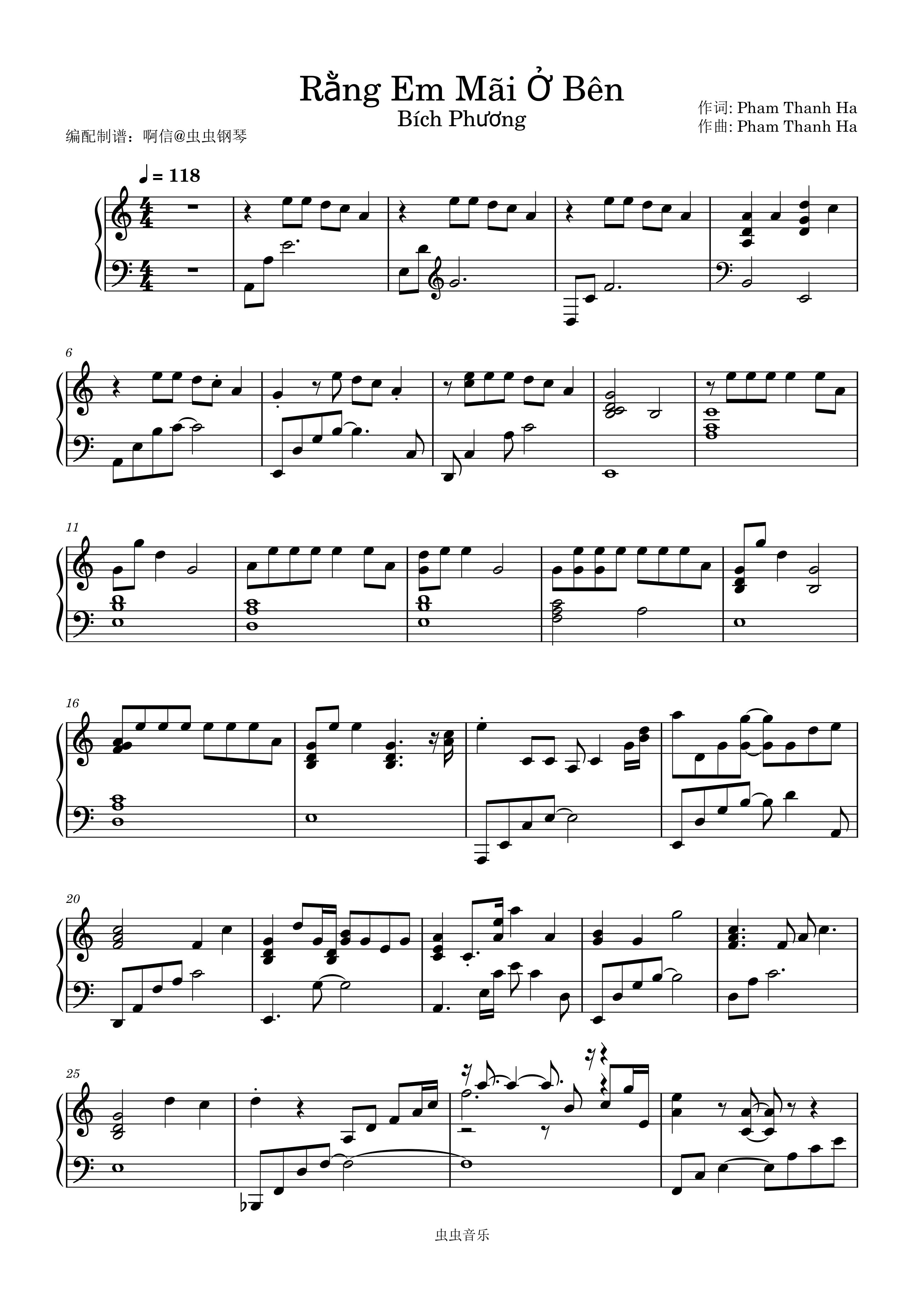Rằng Em Mãi Ở Bên钢琴简谱 数字双手 Pham Thanh Ha