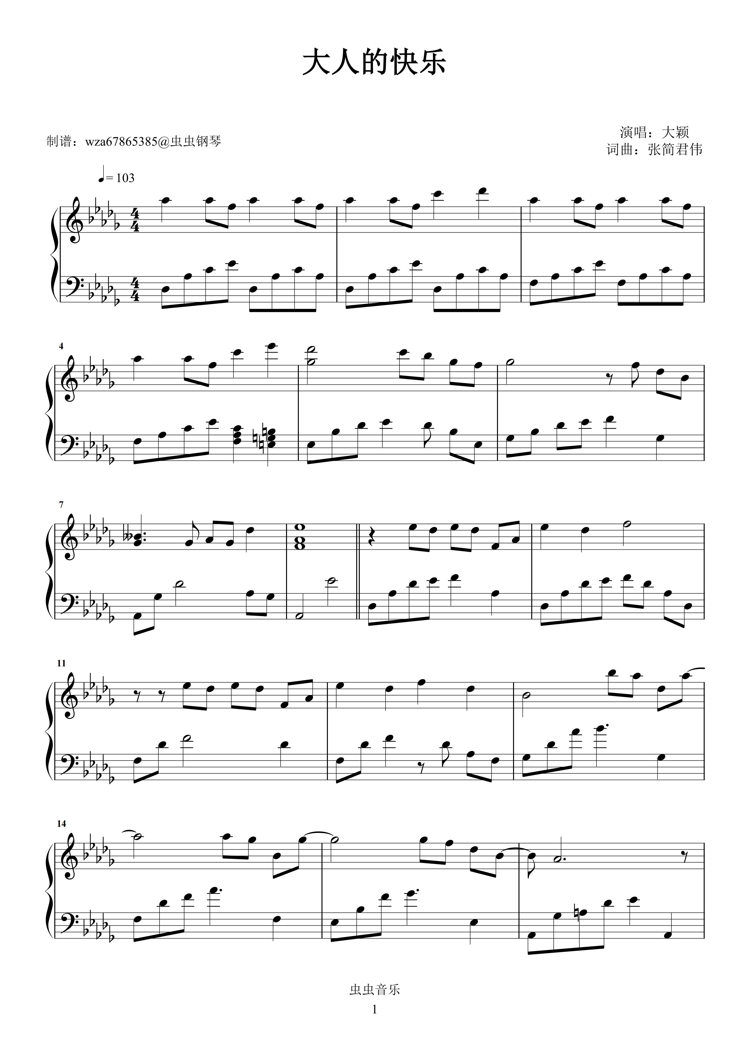 大人的快乐钢琴简谱 数字双手 张简君伟