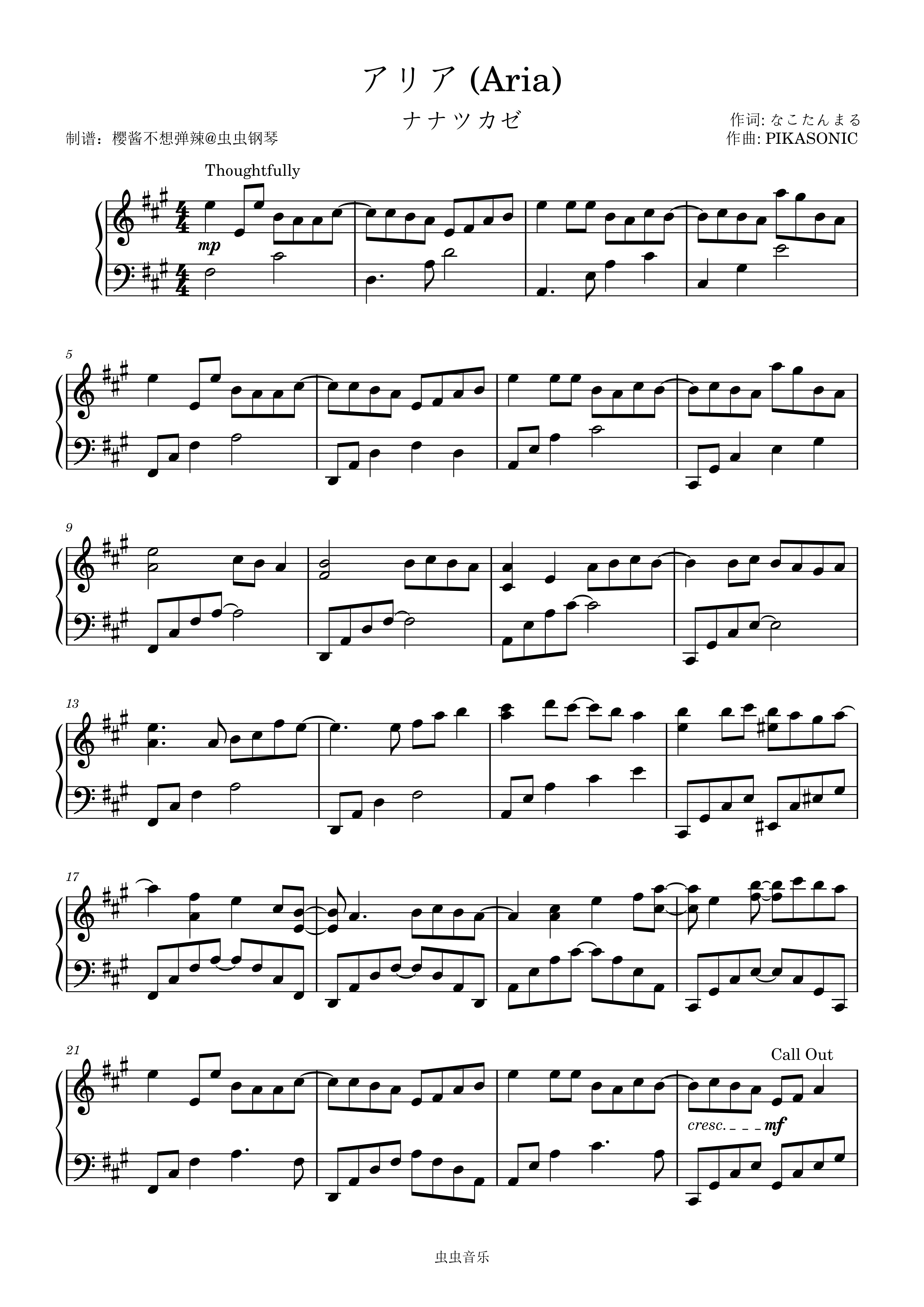 钢琴谱:アリア (Aria) ナナツカゼ
