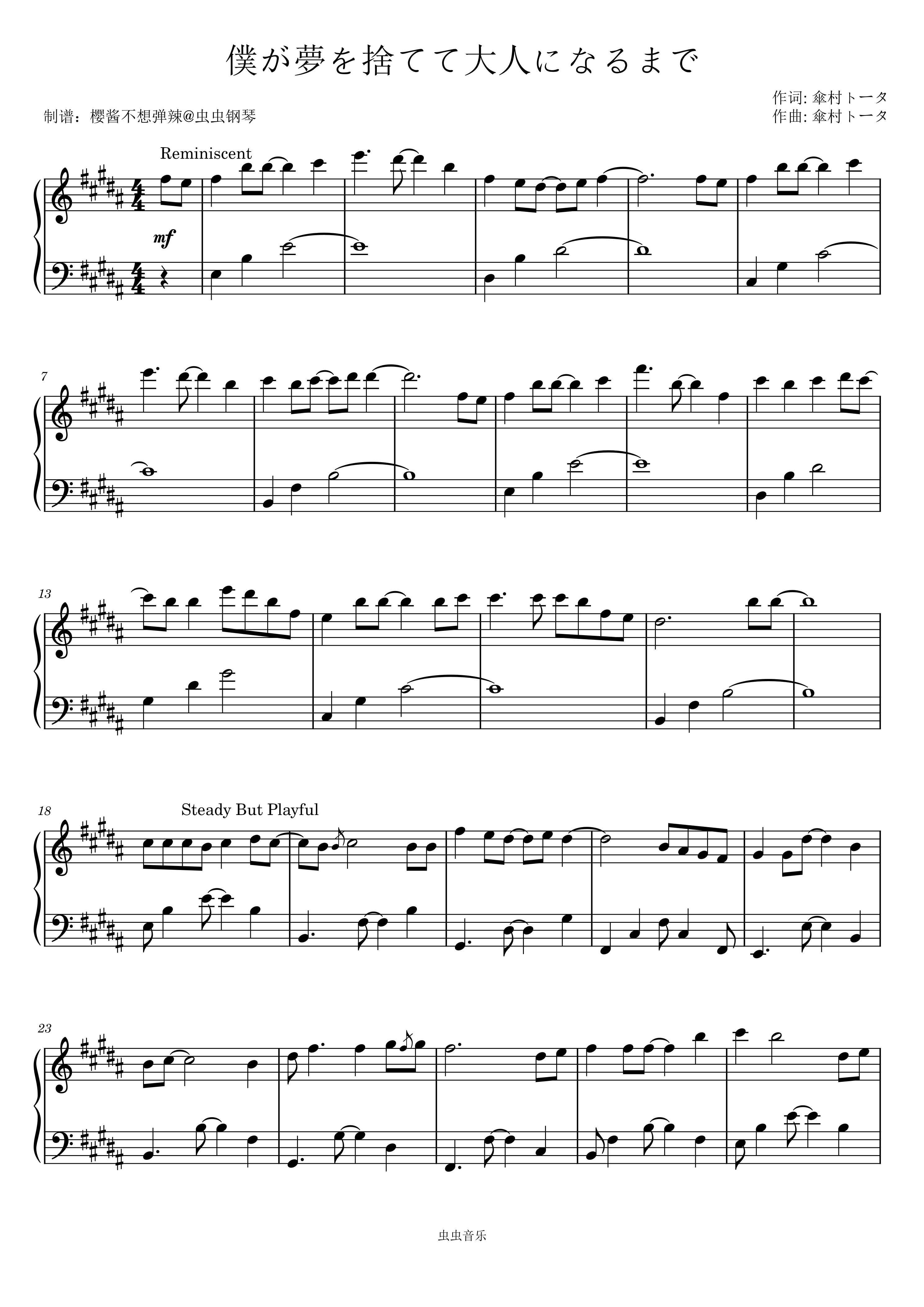 钢琴谱:僕が夢を捨てて大人になるまで (直到我舍弃梦想成为大人) 傘村トータ/初音ミク
