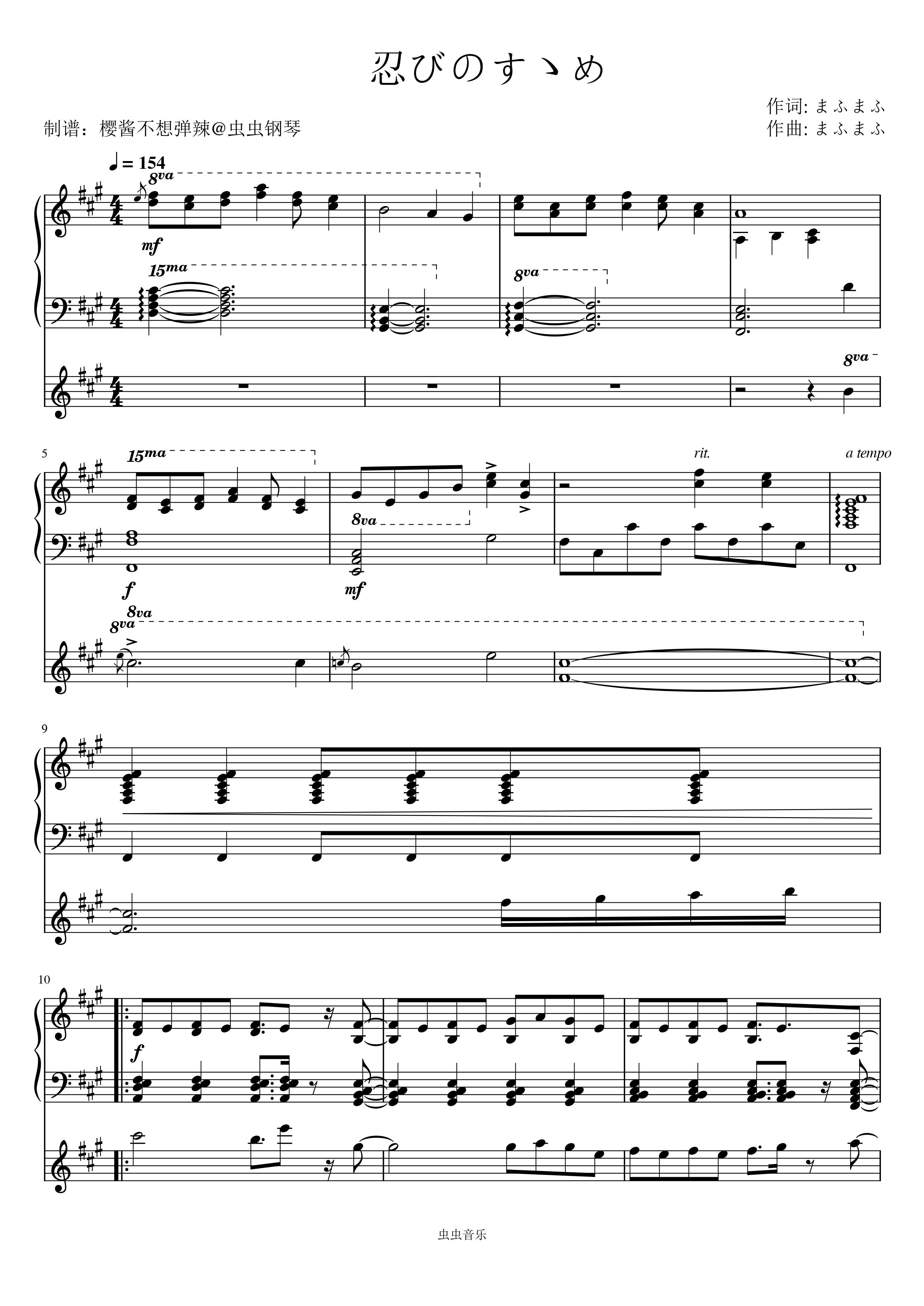 钢琴谱:忍びのすゝめ (忍者的前行路)まふまふ