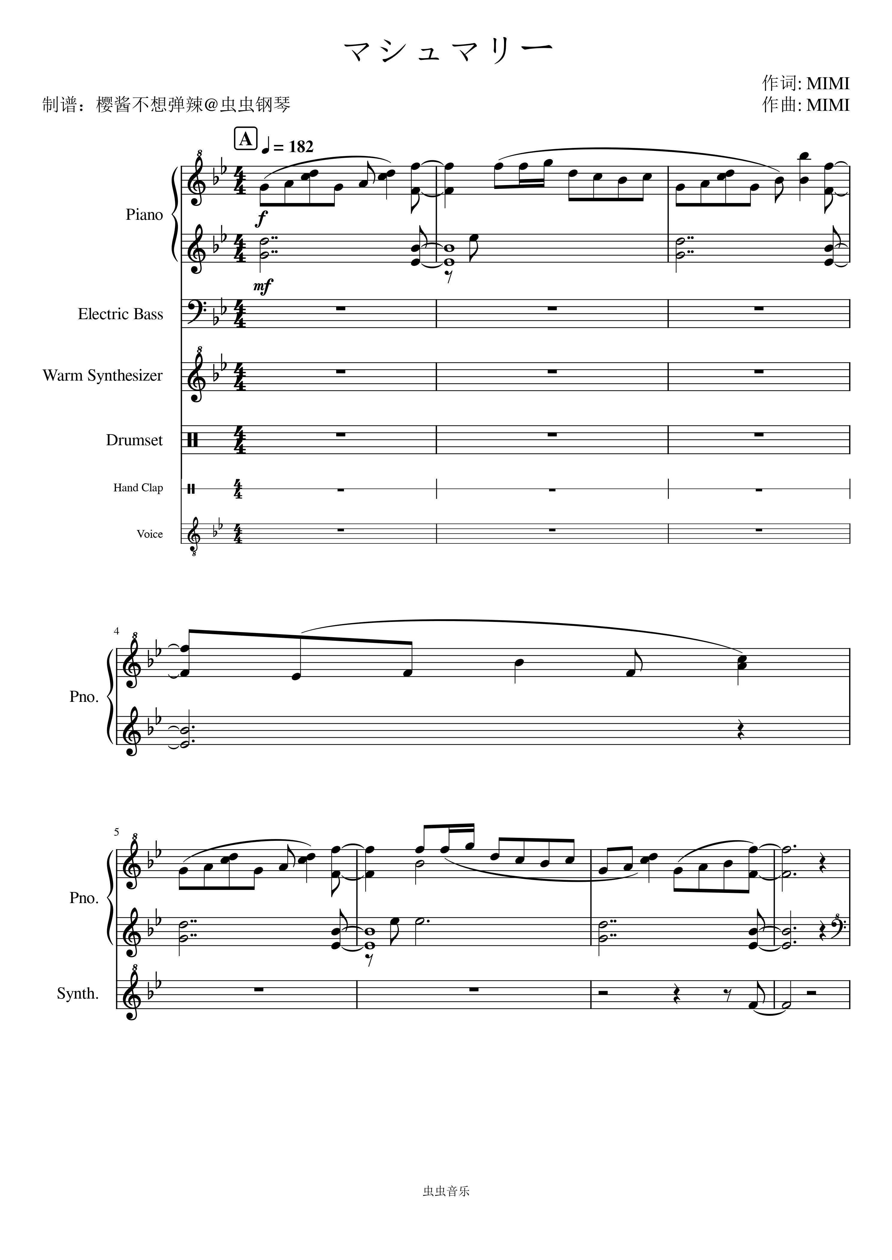 钢琴谱:マシュマリーMIMI/初音ミク